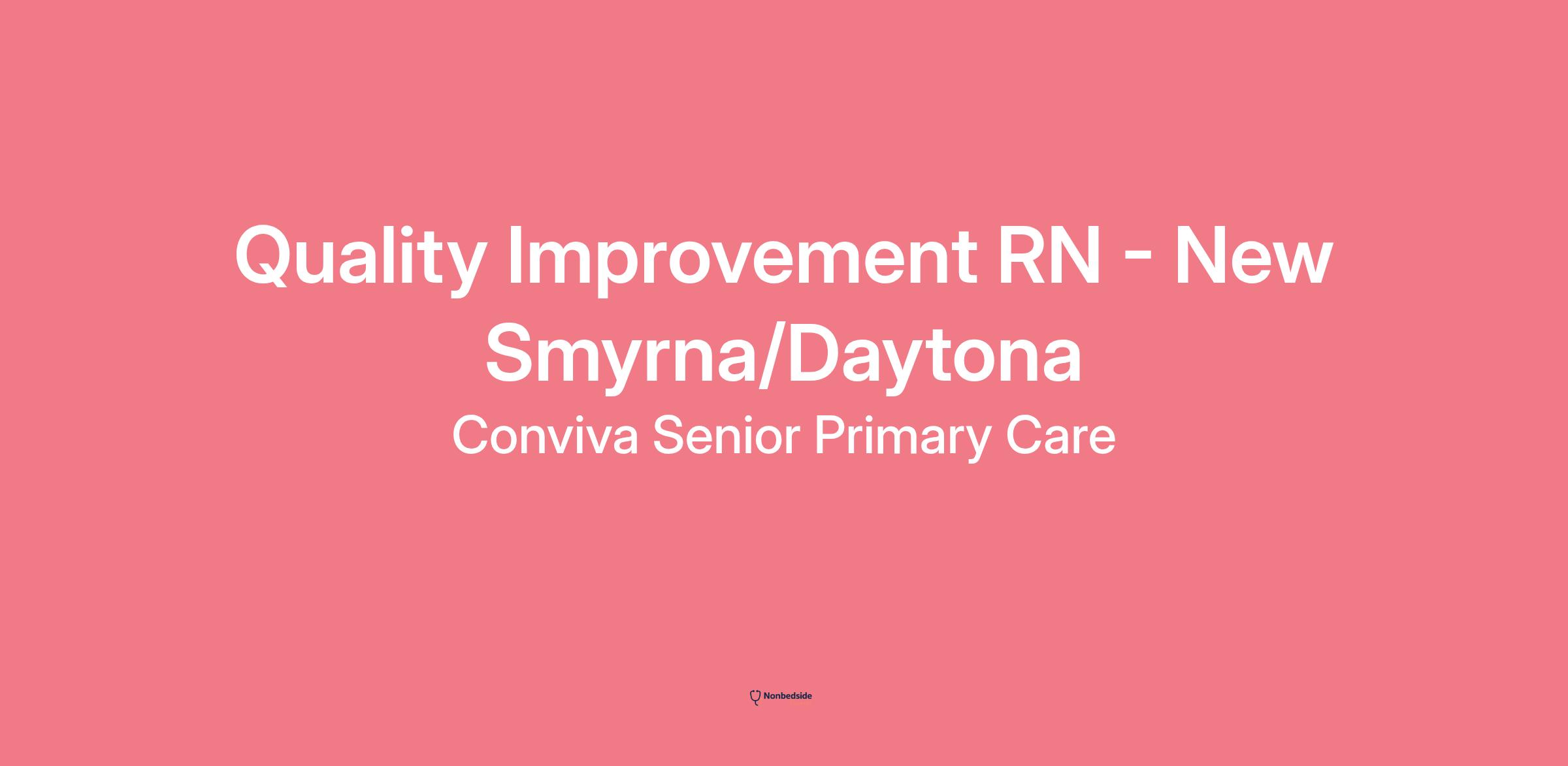 Quality Improvement RN - New Smyrna/Daytona Join to apply for the Quality Improvement RN - New Smyrna/Daytona role at Conviva Senior Primary Care