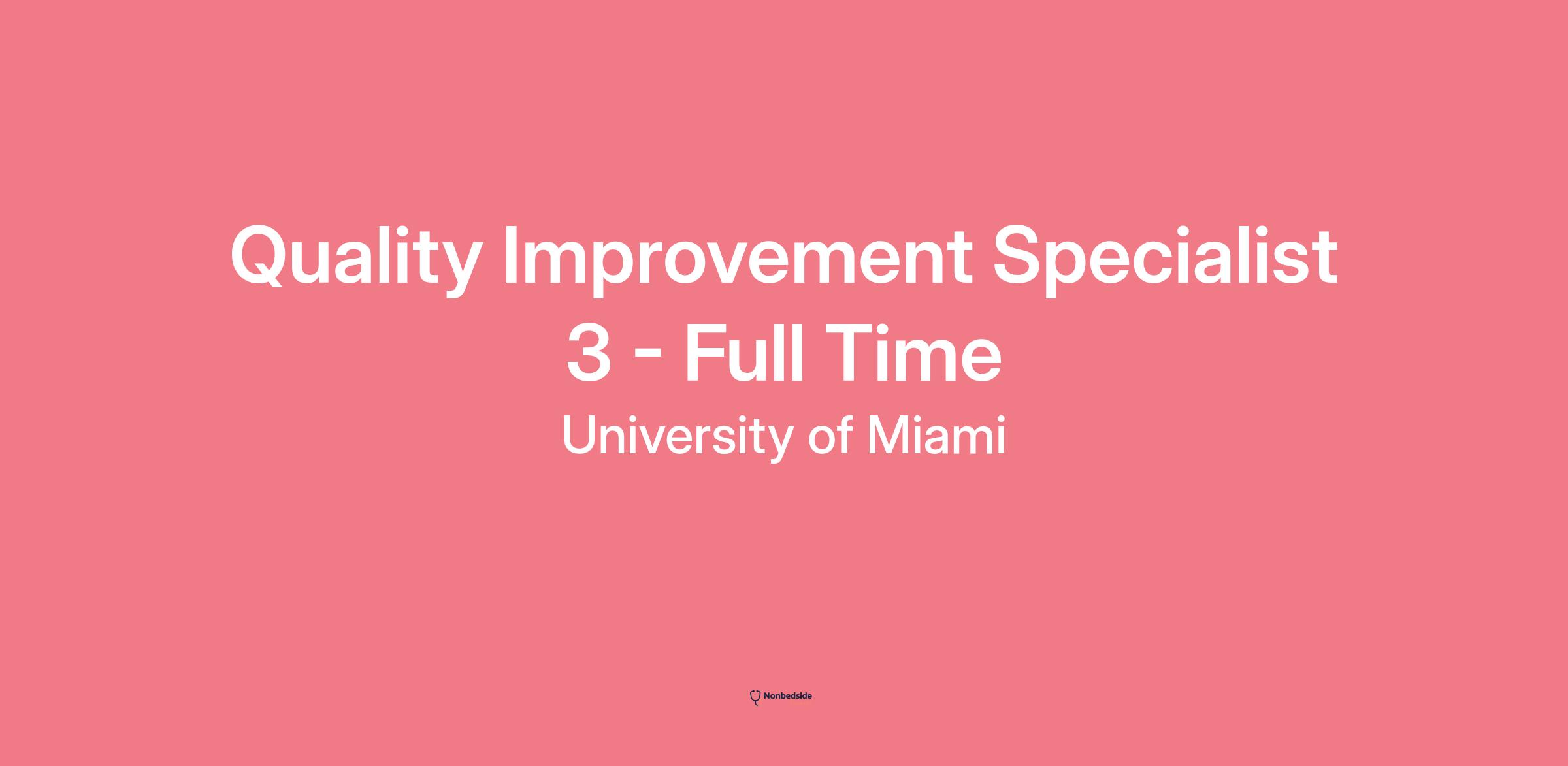 Quality Improvement Specialist 3 - Full Time page is loaded## Quality Improvement Specialist 3 - Full Timelocations: Miami, FLtime type: Full timeposted on: Posted Todayjob requisition id: R100091078## **Current Employees:**If you are a current Staff, Faculty or Temporary employee at the University of Miami, please click to log in to Workday to use the internal application process. To learn how to apply for a faculty or staff position using the Career worklet, please review this .Studies and understands the QPP rules and guidelines and accordingly develops and implements strategies to exceed all performance targets established by CMS. Analyzes both internal and external (CMS) clinical quality and cost data, and identifies opportunities as compared to national benchmarks. Implements quality and cost improvement projects through the beginning to end of the project lifecycle from request, assessment, planning, execution, monitoring and optimization. Leads collaborative efforts by fostering a culture of shared accountability in a high performing work group. Responsible for assembling, leading and leveraging project teams, assigning individual responsibilities, identifying appropriate resources needed and developing a roadmap and schedule to ensure timely completion of projects. Accountable to deliver solutions that are systematic, scalable, incorporate business process management, incorporate advanced technology solutions and often impact organizational culture and clinical transformation. Collaborates closely with IT teams and clinical operations team in designing operational and technical workflows for more efficient processes to help achieve the set targets Ensures adherence to quality and data governance standards. Ensures recommended solutions meet the targeted business/clinical objectives, and a plan is in place to monitor sustainability of the recommendations. Work closely with the clinical leadership team and keep them updated on the status and progress being made for QPP program. Fosters clear communication and synchronize activities among multiple projects and teams. Creates and maintains proper documentation of project related tasks and timelines Present recommendations and strategies to decision makers that are systematic, scalable, incorporate business process management, incorporate technology solutions and often impact organizational culture and clinical transformation. Leads and facilitates meetings with key stakeholders in sharing reports, identifying opportunities, and implementing improvement initiatives Closely collaborate with, other analysts and Quality Improvement Specialists. Serve as a subject matter expert in Physician Quality Payment Program for the health system. Provide support and expertise to perform general functions for the department as requested, on an individual basis or as a team member.***This list of duties and responsibilities is not intended to be all-inclusive and may be expanded to include other duties or responsibilities as necessary.*****CORE QUALIFICATIONS****Education:**Minimum Bachelor’s Degree in Business, Healthcare, Engineering, Technology or related area, from a four-year college or university.**Certification and Licensing:**Six Sigma Green Belt requiredProject Management Professional certification, Change Management certification, or related certification highly preferred**Experience:**Minimum 5 years’ experience managing medium/large scale process improvement and/or quality improvement projects in a clinical setting with a Six Sigma Green Belt, Lean Gold Certification, or comparable. Project Management Professional certification, or comparable certification is highly preferred. Experience quantifying outcomes and measurements and using data analytic tools for meaningful insights. Strategic planning expience. Public speaking and presentation experience required. Demonstrated ability utilizing quality improvement methodologies and process improvement principles. Demonstrated ability ensuring deliverables meet the targeted business/clinical objectives in the established timeframe. Software experience: Excel, PowerPoint, Access and Visio. Daily use of extensive computer software, spreadsheets, and flow-charting.Preference given to candidates with most experience in the following areas:* Broad spectrum direct work experiences in healthcare quality, patient safety, clinical transformation, value based care, and clinical variations.* Knowledge of QPP / MACRA – MIPS program will be highly preferred.* Portfolio management.* Experience training and mentoring within organizations* Coursework and/or work experience in healthcare quality and patient safety, clinical informatics, patient centered outcomes, quality improvement, clinical resource management, quality improvement, business process management, performance improvement, vendor relationship management, and related topics.* Clinical project management and/or Knowledge of healthcare quality and outcomes measurement and reporting experience.* Familiarity with aspects of care and clinical workflows.* Evidence of ability to draw on knowledge from the following areas: Continuous process improvement processes, performance improvement, service excellence, systems for patient safety, healthcare quality.* Knowledge of the principles and practices of value-based care, including familiarity with barriers to high-value care.**Knowledge, Skills and Behaviors:*** Commitment to University Values: Diversity, Integrity, Responsibility, Excellence, Compassion, Creativity, Teamwork.* Excellent technical skills and ability to leverage a variety of relevant platforms and applications.* Excellent interpersonal and presentation skills: Ability to promote and sustain outstanding interpersonal and customer service skills (verbal and written) while accepting responsibility to ensure all working relationships are respectful and professional. Ability to collaboratively communicate quality improvement methodologies a