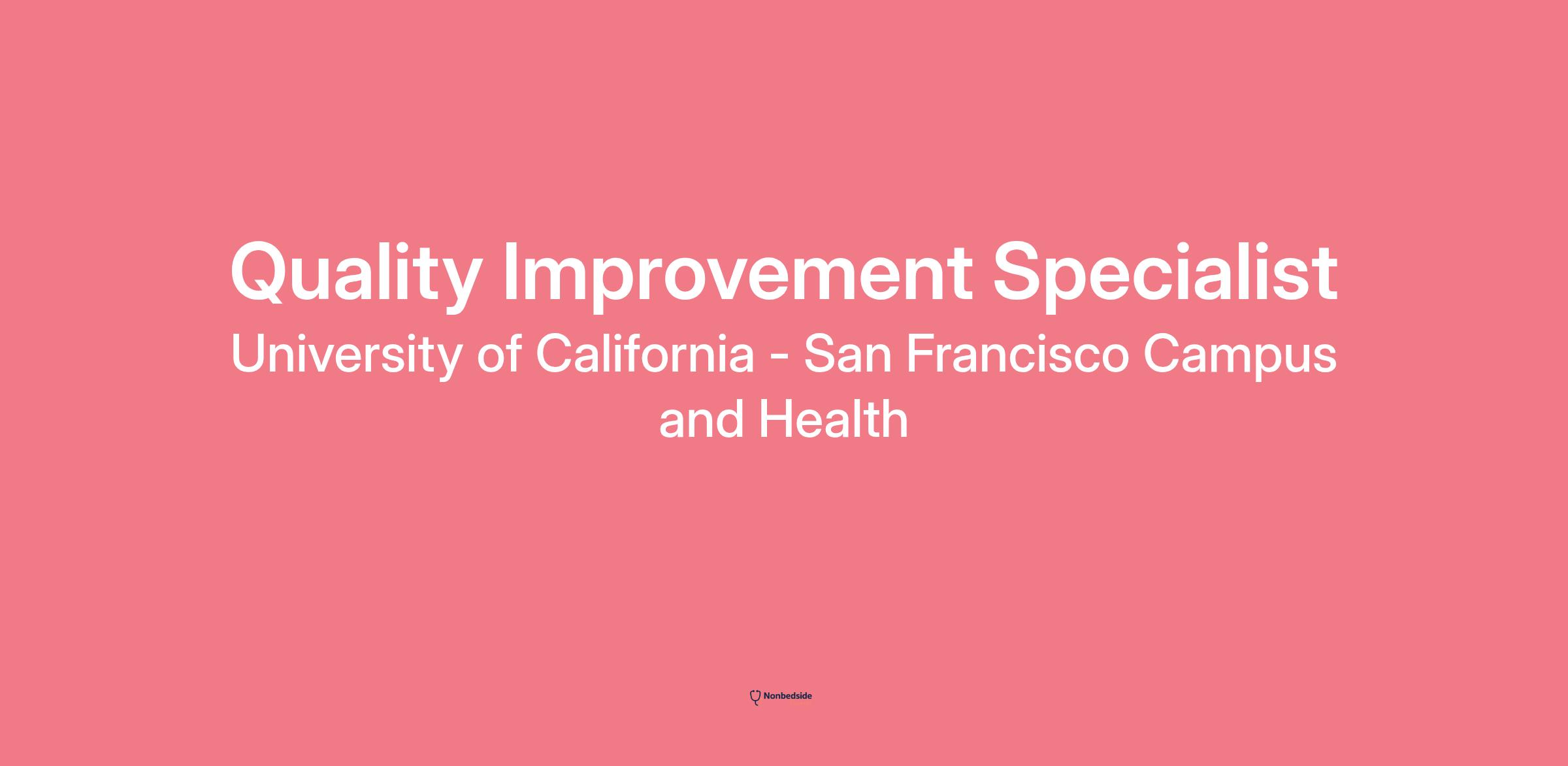 Job Summary The Quality Improvement Specialist will provide quantitative and qualitative programmatic and data analysis support to the clinical enterprises and its growing portfolio of quality initiatives within the Department of Medicine and its Divisions, with attention to the Division of Hospital Medicine at ZSFG. This role integrates data analytics, support of strategic planning, and program oversight, ensuring the effective implementation and evaluation of quality improvement efforts across inpatient care settings. This position will liaise with other support roles of the outpatient care settings. The incumbent will manage hospital data sources, develop analytic datasets; and provide consultative support as needed. Additionally, they will identify resource needs, support project implementation and contribute data analytics in support departmental/divisional strategy. The incumbent must be able to carry out multiple tasks and projects simultaneously while maintaining critical attention to detail.