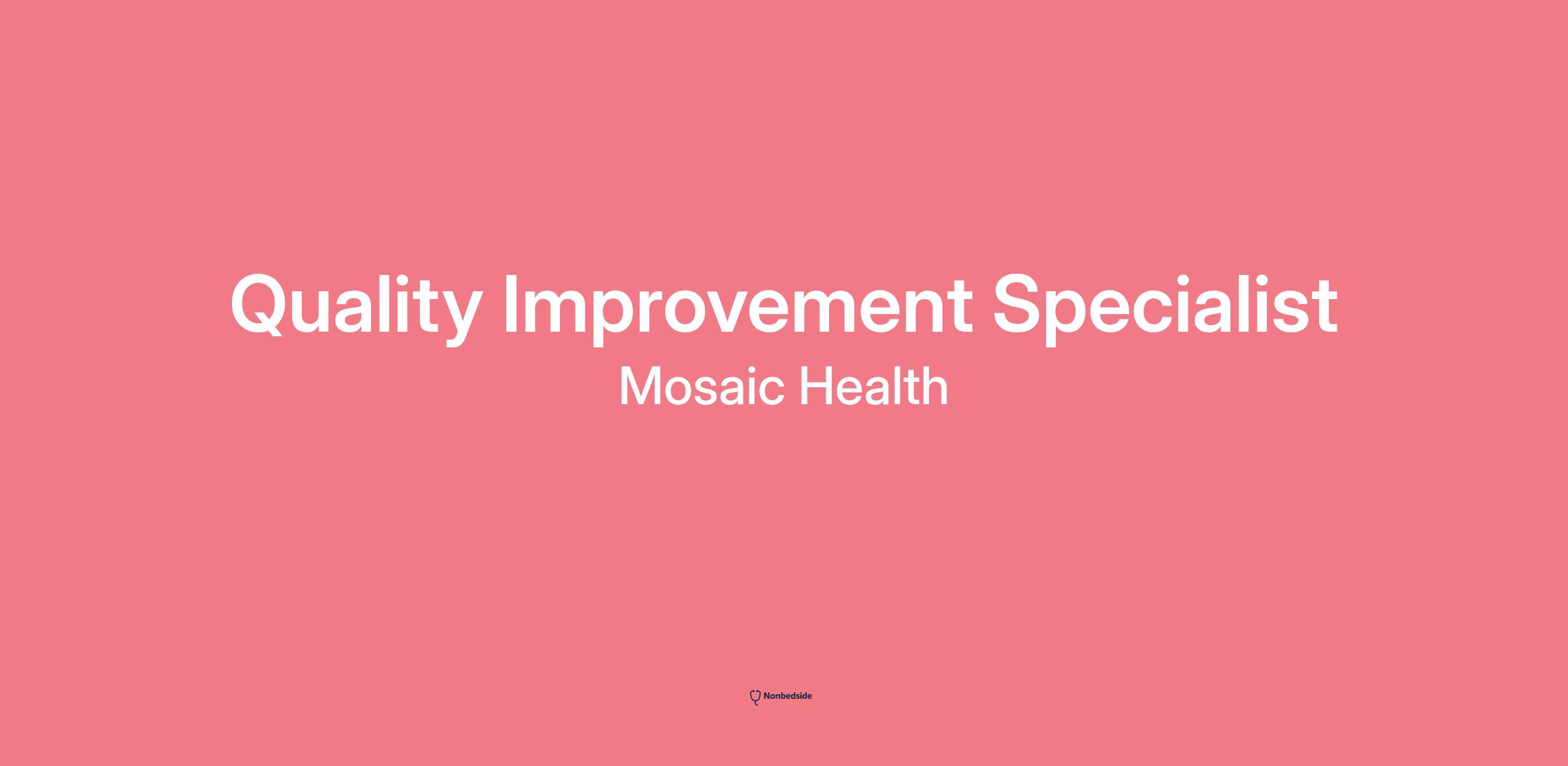 Join to apply for the Quality Improvement Specialist role at Mosaic Health .