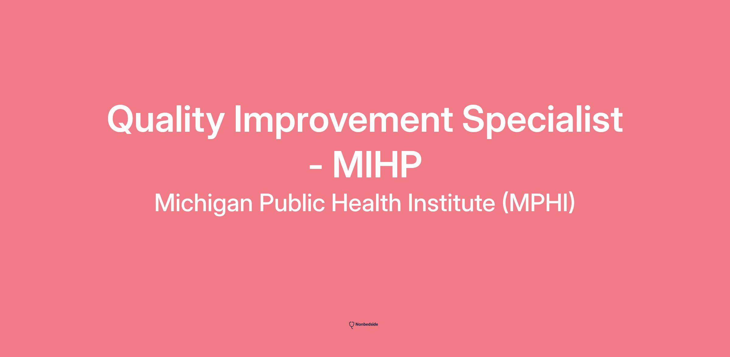 The MIHP Quality Improvement Specialist will oversee the new Provider Application Process and Certification Review process for the Maternal Infant Health Program (MIHP) agencies. This Specialist will conduct quality improvement efforts aimed at improving the internal processes of the MIHP within the Michigan Department of Health and Human Services (MDHHS), and of services being rendered by MIHP agencies statewide. This Specialist will perform project coordination responsibilities under the guidance of the Maternal Infant Health Unit Manager and Perinatal and Infant Health Section Manager. The MIHP Quality Improvement Specialist will coordinate and support the program's strategic planning, implementation, monitoring, collaboration, and evaluation, and serve as a MDHHS representative.