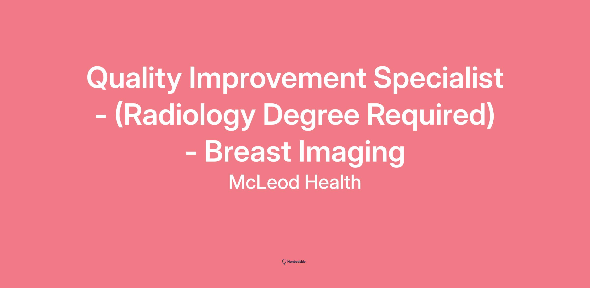 Job Summary: The Quality Assurance Specialist (QAS) for Breast Imaging will have oversight of all regulatory compliance issues, including all aspects of the Mammography Quality Standards for McLeod Hospital Systems. The QAS will be responsible for coordination of tasks and documentation for Quality Assurance. The QAS ensures the department consistently produces high quality mammographic exams and procedures to aide in medical diagnosis, treatment, and prevention of disease.