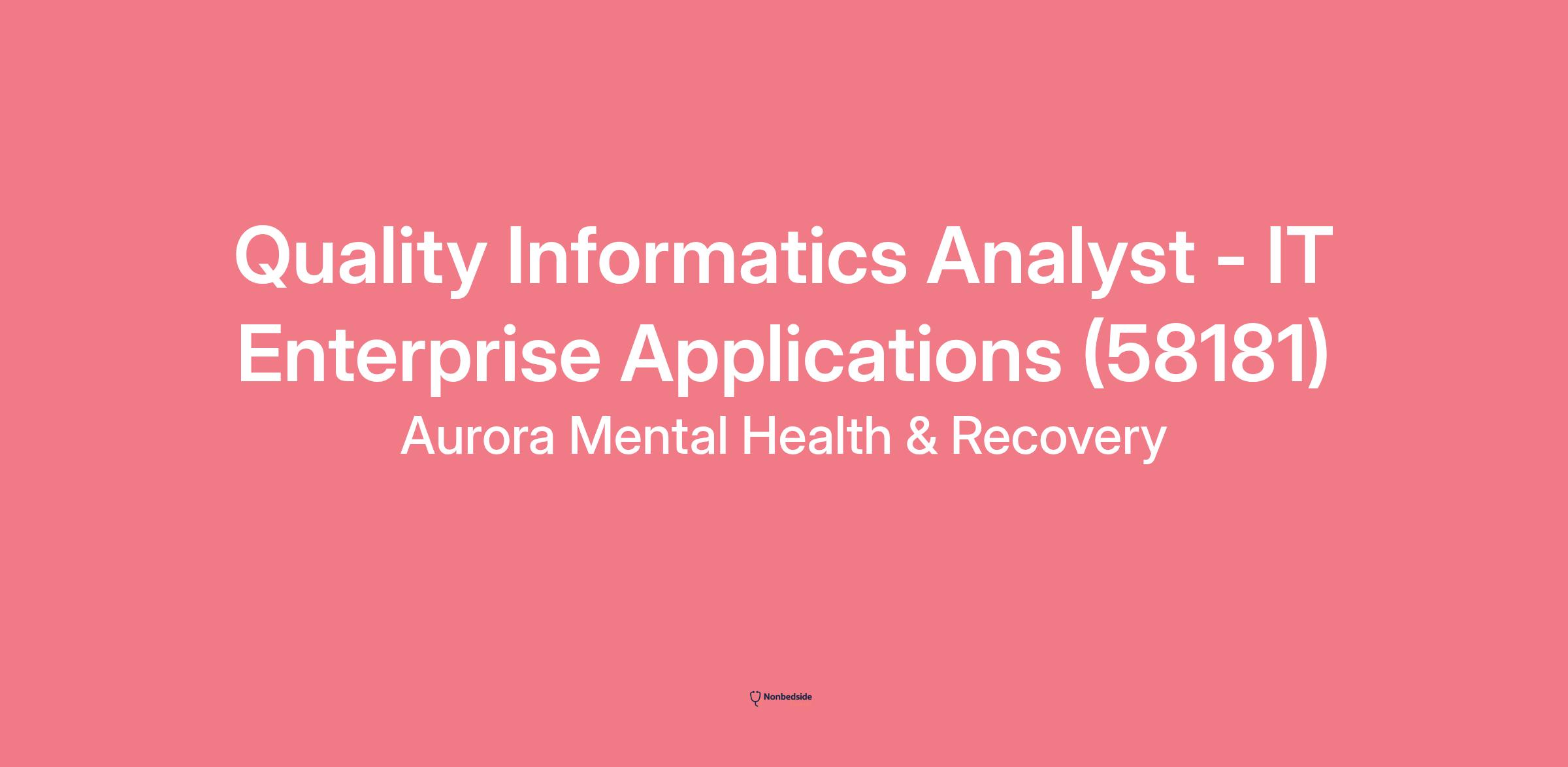 Quality Informatics Analyst - IT Enterprise Applications (58181)