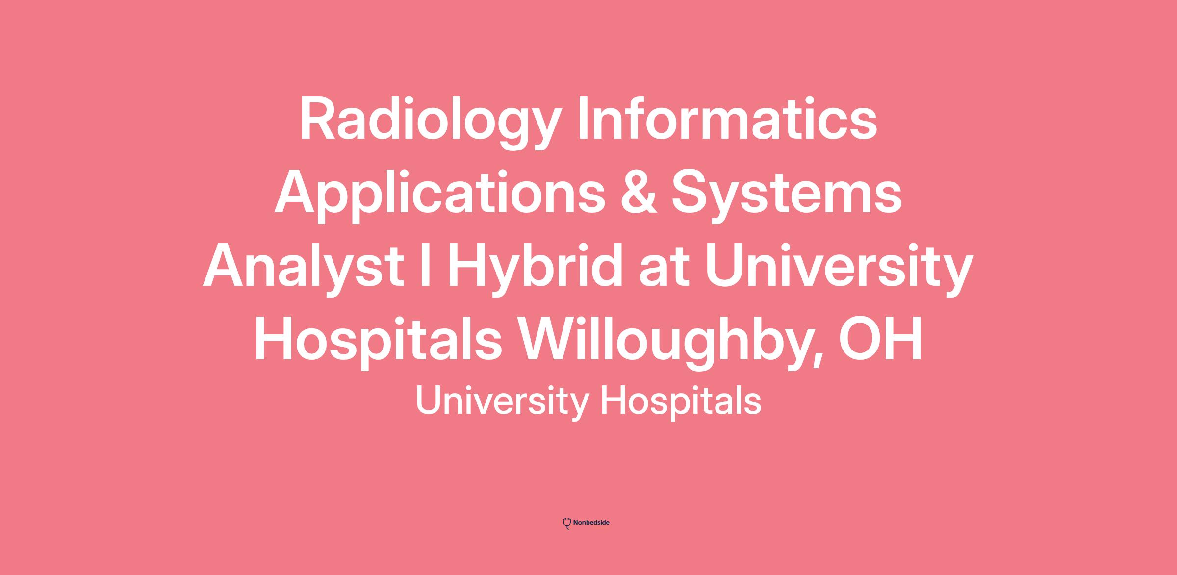 Radiology Informatics Applications & Systems Analyst I Hybrid job at University Hospitals. Willoughby, OH.