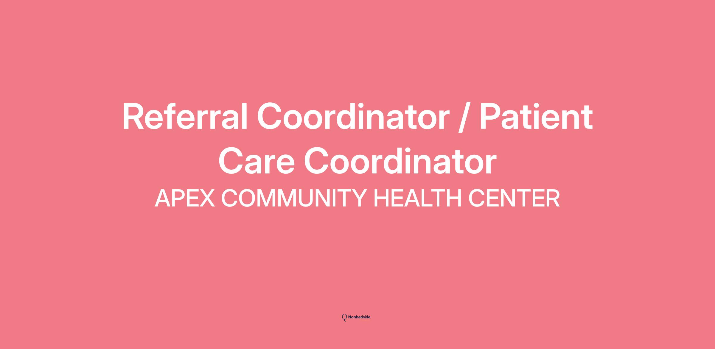 Apex Community Health Center is a community-based healthcare organization dedicated to providing accessible, high-quality, and compassionate care to all. We are expanding our team and seeking a detail-oriented, patient-focused Referral Coordinator / Patient Care Navigator to help support our growing patient population.