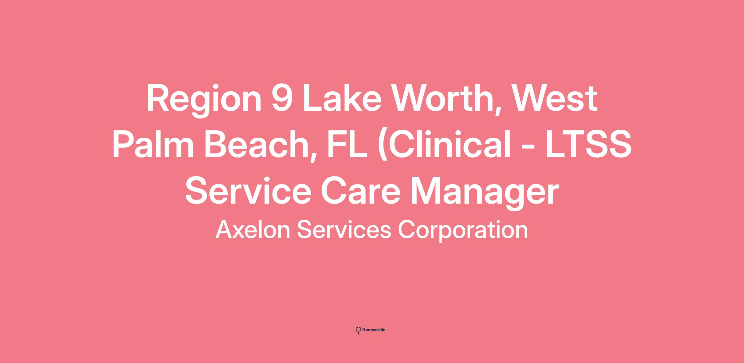 Region 9 Lake Worth, West Palm Beach, FL (Clinical - LTSS Service Care Manager Region 9 Lake Worth, West Palm Beach, FL (Clinical - LTSS Service Care Manager 2 days ago Be among the first 25 applicants