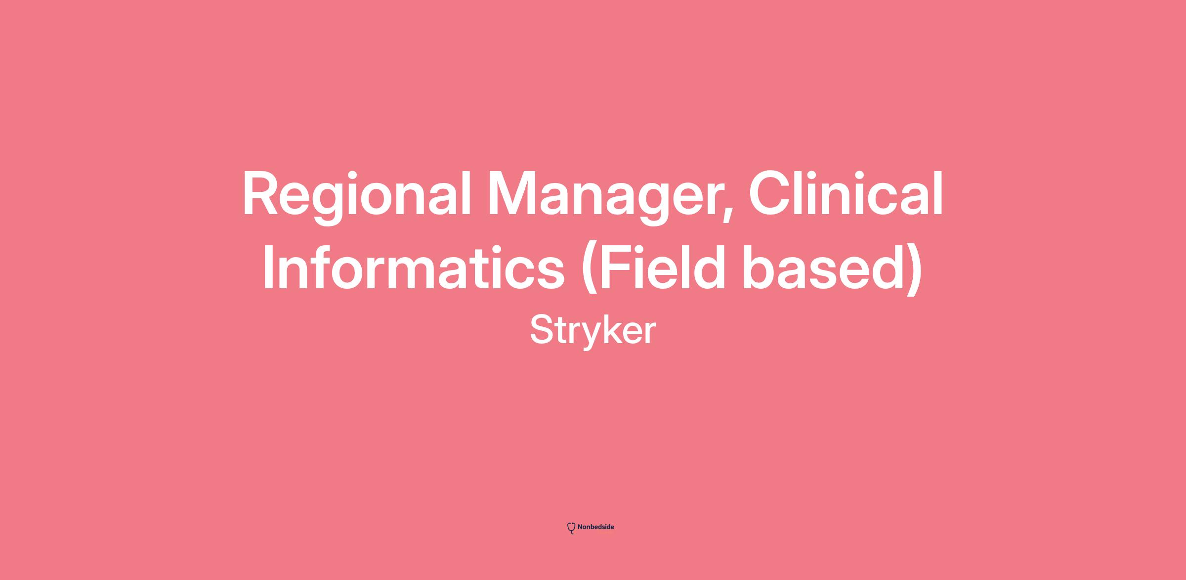 Regional Manager, Clinical Informatics (Field based) Join to apply for the Regional Manager, Clinical Informatics (Field based) role at Stryker