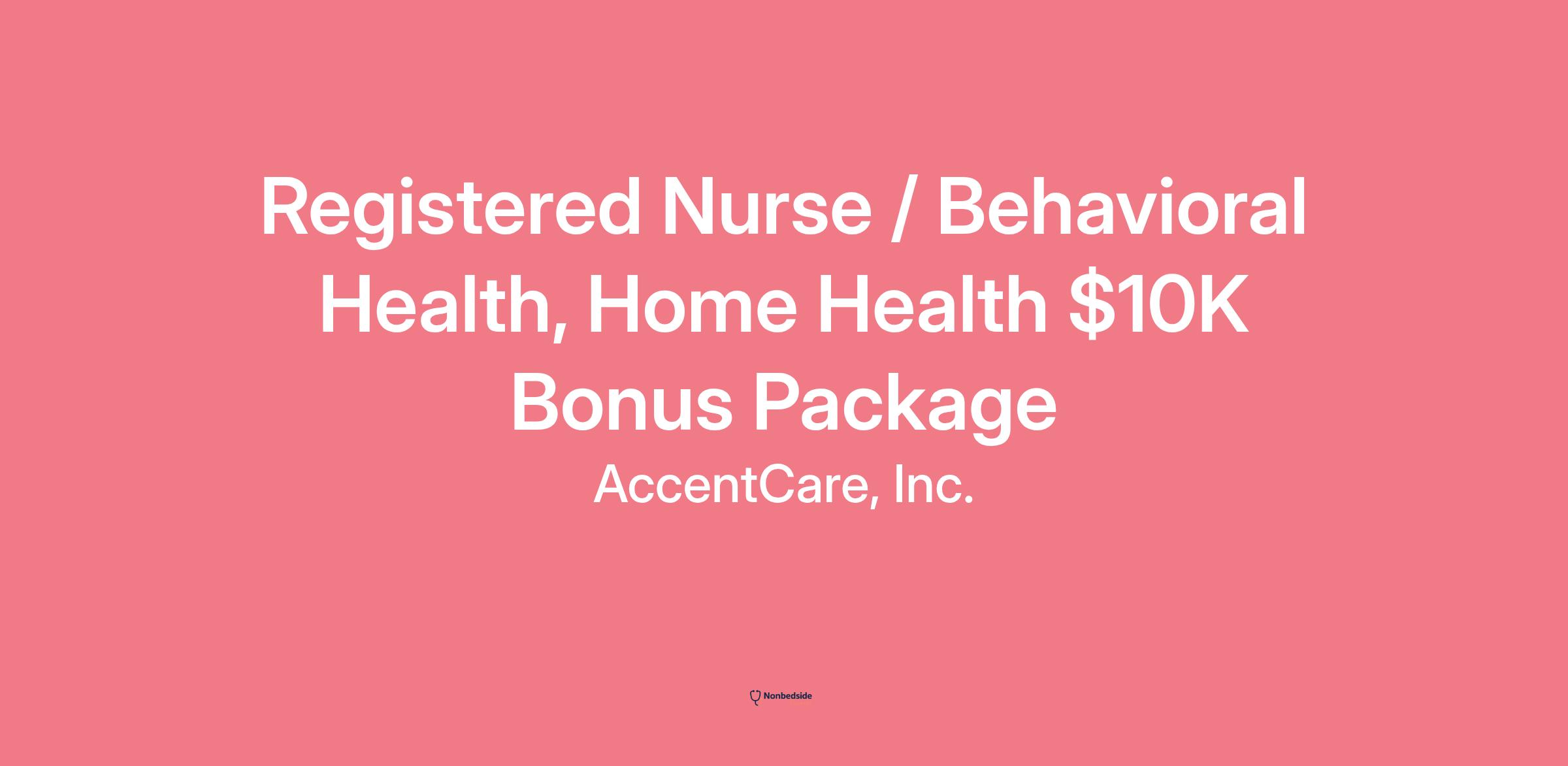 Caring for others is more than what you do — it’s who you are. At AccentCare, you’ll join a purpose-driven, collaborative culture that sets the standard for excellence and gives you the trust and tools to do your best work. You’ll belong to a team that cares deeply for patients and each other; a team committed to consistently providing exceptional care.