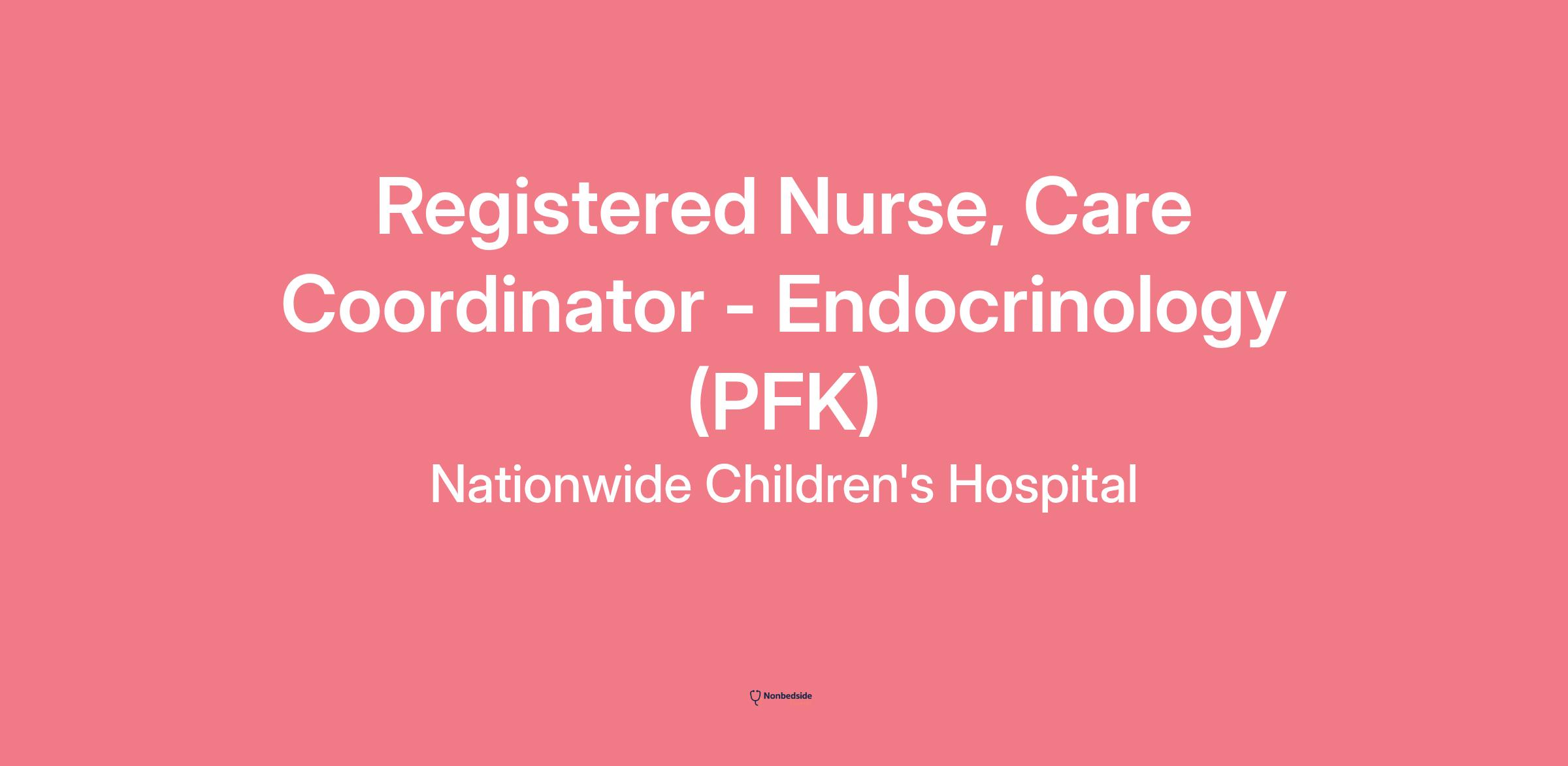 Registered Nurse, Care Coordinator - Endocrinology (PFK) Join to apply for the Registered Nurse, Care Coordinator - Endocrinology (PFK) role at Nationwide Children's Hospital