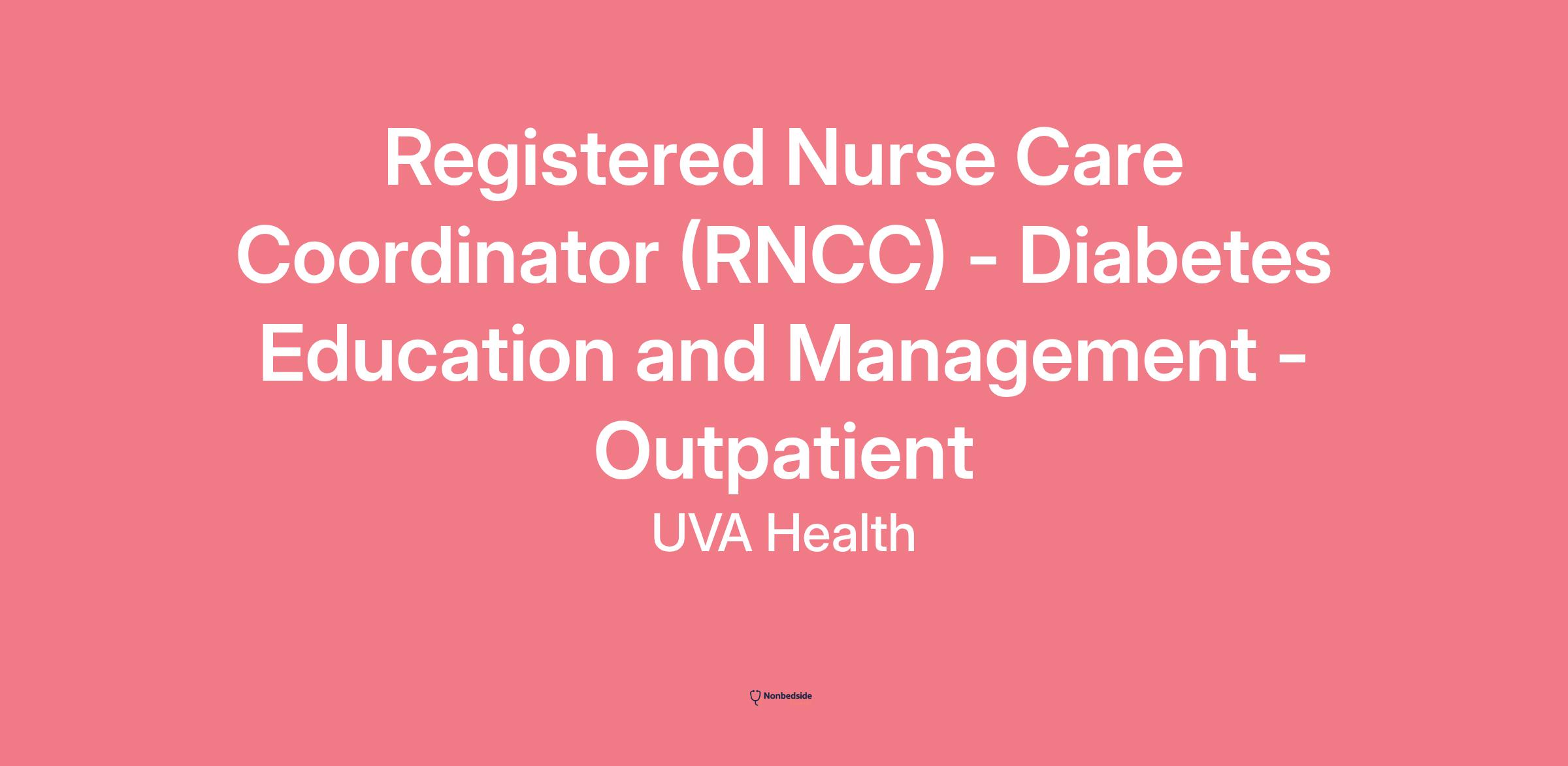 Registered Nurse Care Coordinator (RNCC) - Diabetes Education and Management - Outpatient Join to apply for the Registered Nurse Care Coordinator (RNCC) - Diabetes Education and Management - Outpatient role at UVA Health