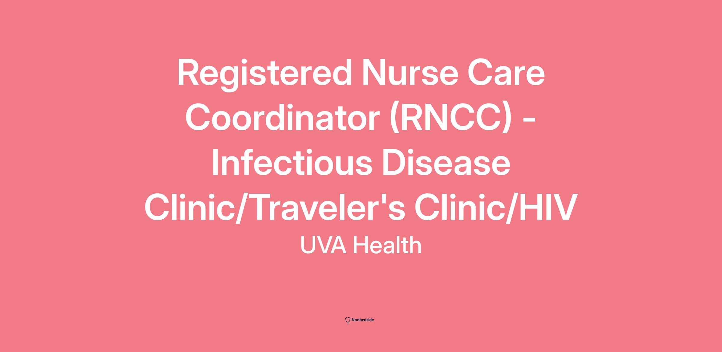 Registered Nurse Care Coordinator (RNCC) - Infectious Disease Clinic/Traveler's Clinic/HIV Join to apply for the Registered Nurse Care Coordinator (RNCC) - Infectious Disease Clinic/Traveler's Clinic/HIV role at UVA Health