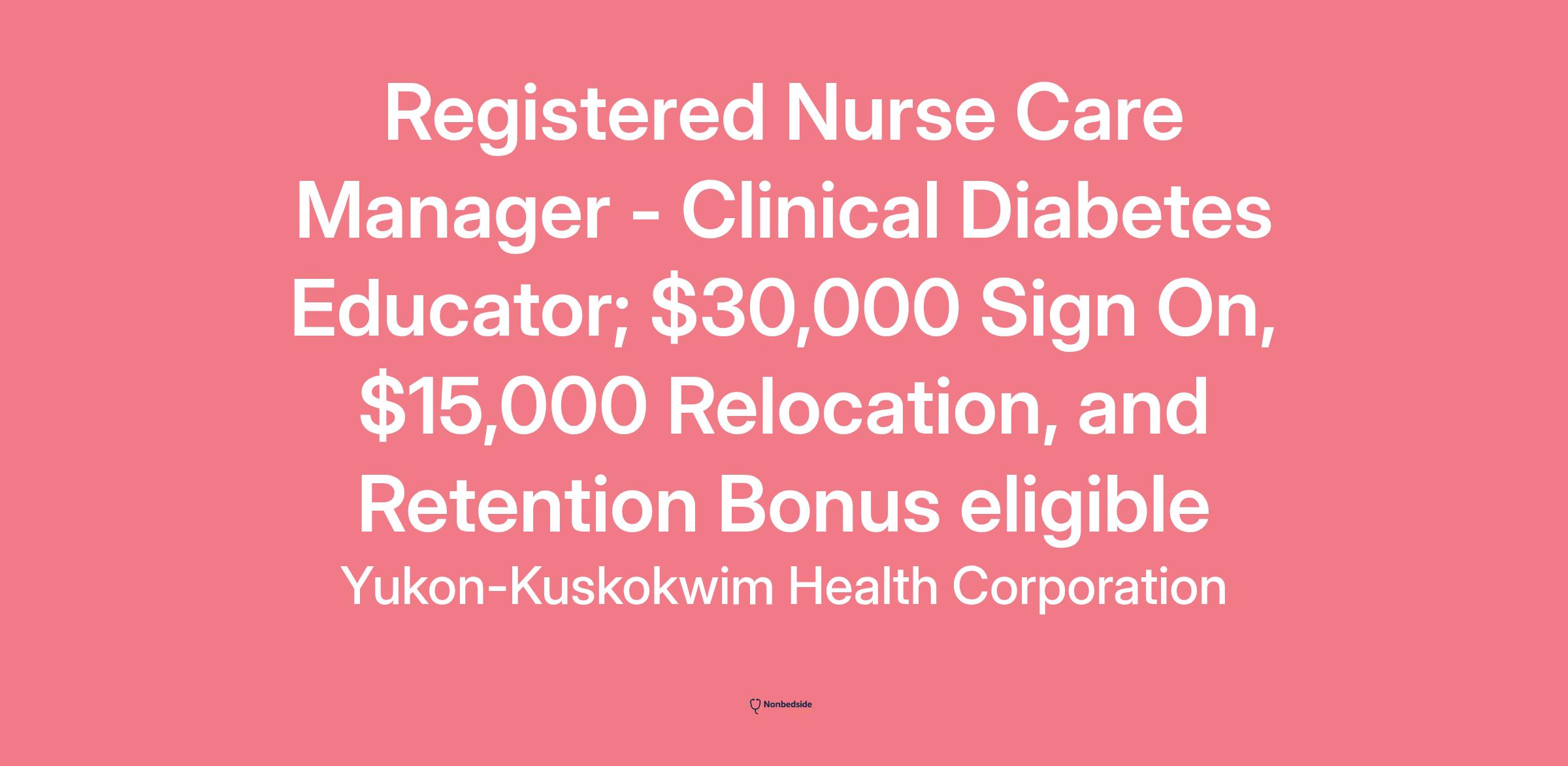 Position Summary: This is a grant funded position. Registered Nurse Case Manager/Clinical Diabetes Educator is primarily responsible for providing comprehensive diabetes education and care for patients with Type 1 diabetes, Type 2 diabetes, gestational diabetes, and patients at high risk of developing diabetes in a clinic setting. Education is provided via telephonic communication, video teleconferencing, and in-person education sessions. This at times does require village travel. Educator will be responsible for ordering labs for patients according to hospital policies. Educator will be responsible for documenting education in electronic health record. This position will assist in the planning, coordinating and providing of diabetes-related health promotion activities in the YK Delta Region. Patients and activities are accessed via multiple village trips per month. Educator will work closely with village clinic and hospital staff to promote diabetes standards of care and inform of new advances in diabetes care. Educator assists Diabetes Coordinator with maintenance of the Diabetes Registry and grant requirements. Educator works closely with the Registered Dietitian Clinical Diabetes Educator and Diabetes Pharmacist to ensure comprehensive care of clients. Educator participates in all program outreach activities such as monthly Diabetes Support Groups and radio shows, media campaigns, and special events. Educator participates in department planning and goal setting to achieve excellence in patient care and partnership with our tribal leaders. Educator believes in and promotes Napartet and all corporate endeavors. Performs other duties as assigned or required.