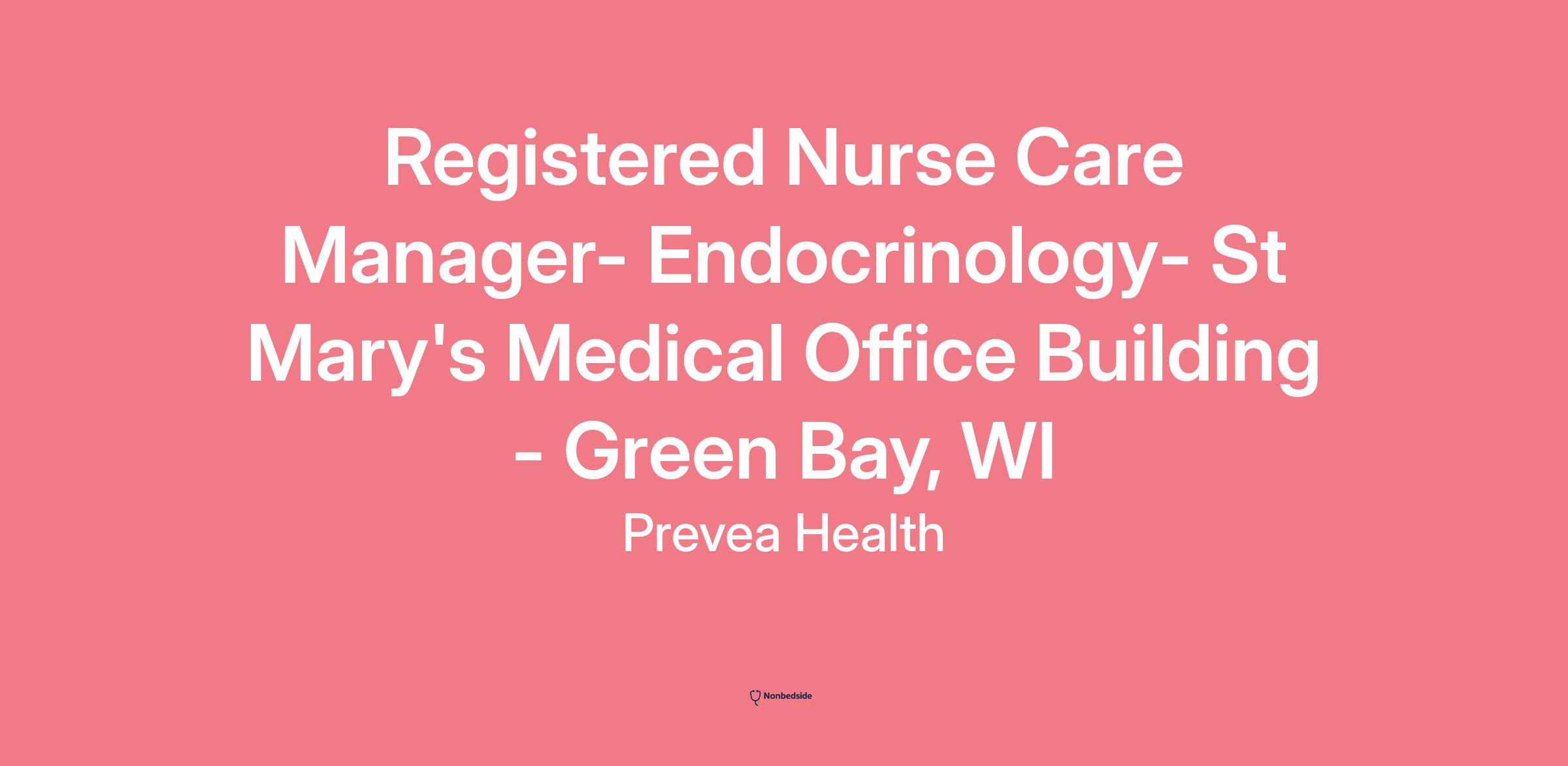 Overview Registered Nurse Care Manager- Endocrinology- St Mary\'s Medical Office Building