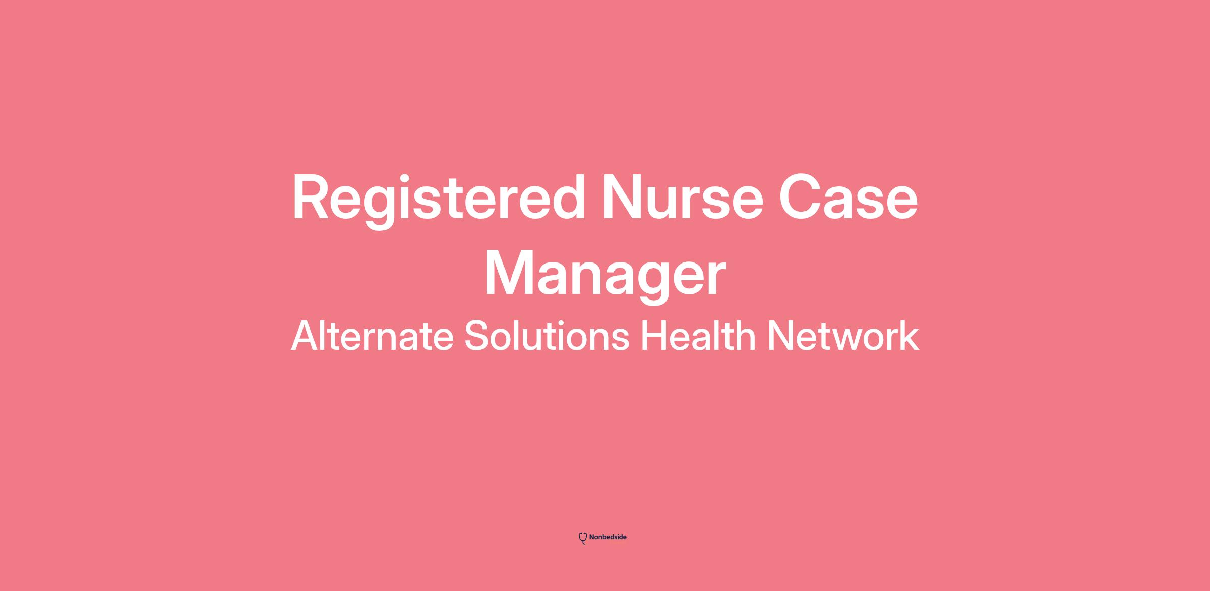 Join to apply for the Registered Nurse Case Manager role at Alternate Solutions Health Network