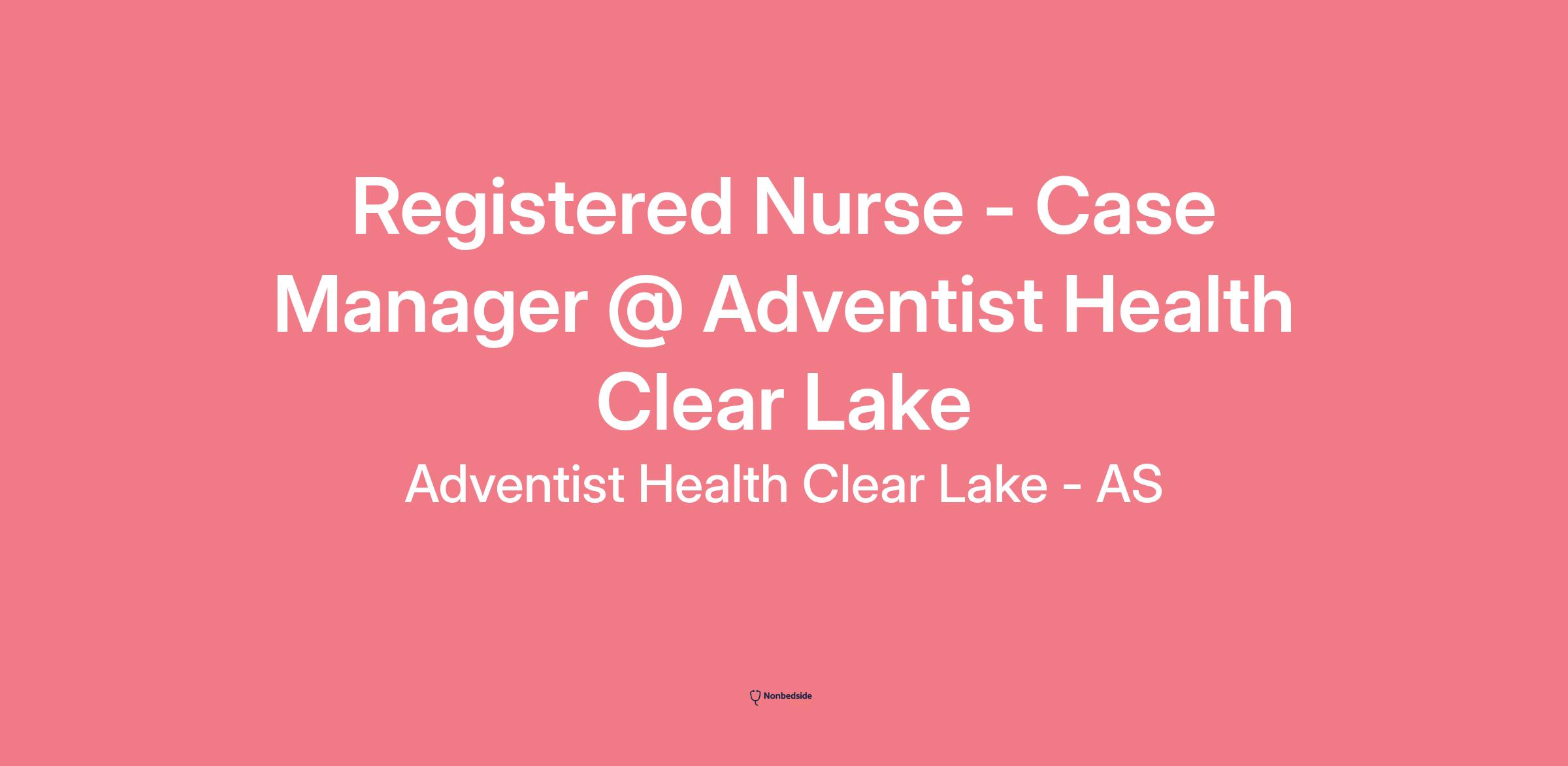 Client Name Adventist Health Clear Lake - AS Job Type Travel Offering Nursing Profession RN Specialty Case Manager Job ID 33910199 Job Title Registered Nurse - Case Manager @ Adventist Health Clear Lake Weekly Pay $2706.0