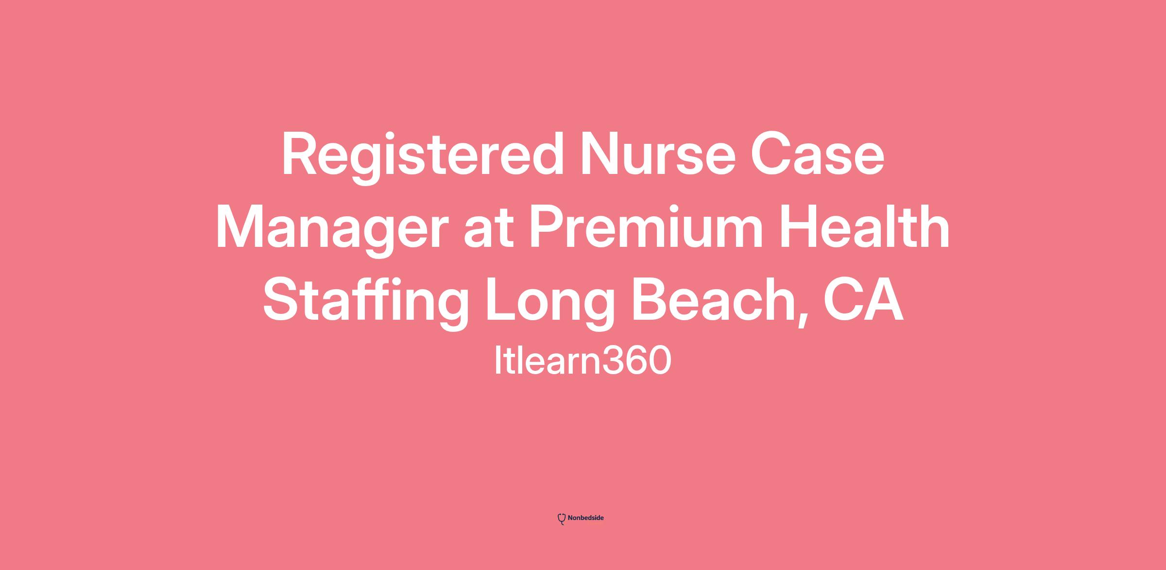Overview Registered Nurse Case Manager job at Premium Health Staffing. Long Beach, CA.