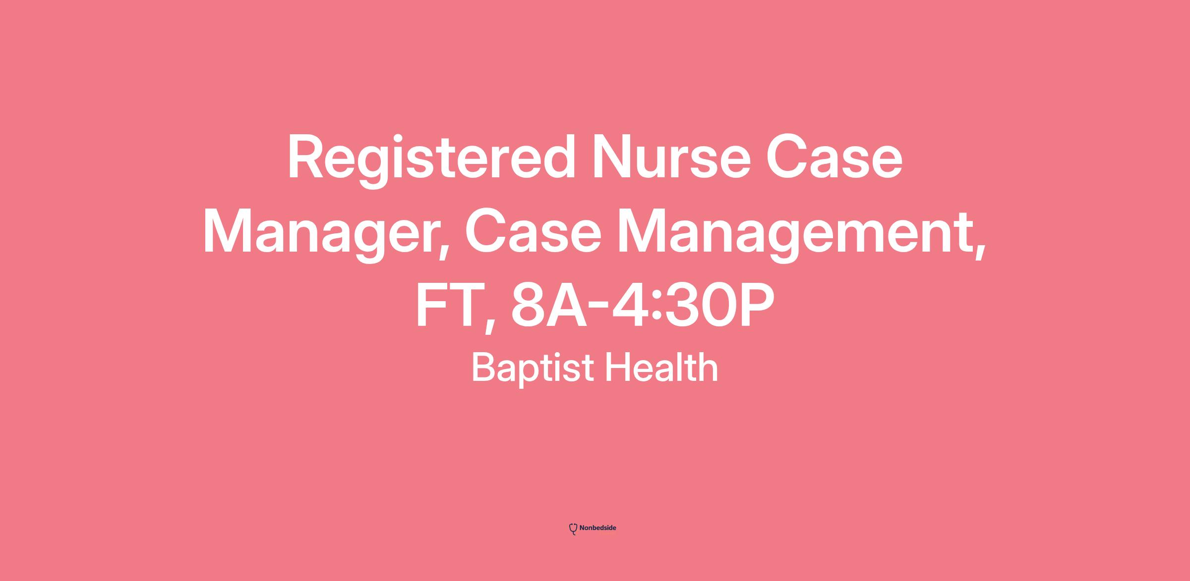 Registered Nurse Case Manager, Case Management, FT, 8A-4:30P