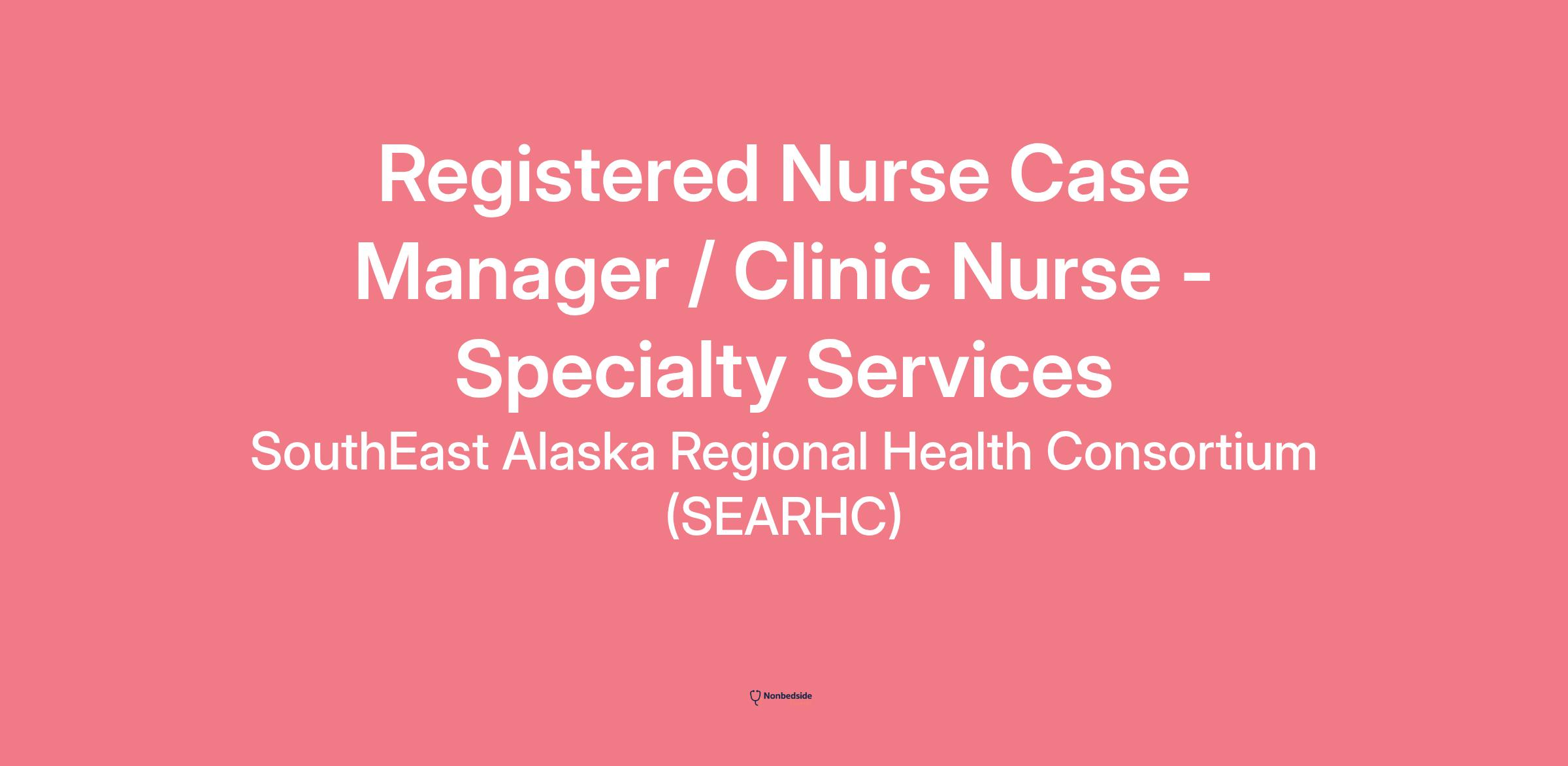 Registered Nurse Case Manager / Clinic Nurse Join to apply for the Registered Nurse Case Manager / Clinic Nurse role at SouthEast Alaska Regional Health Consortium (SEARHC) .