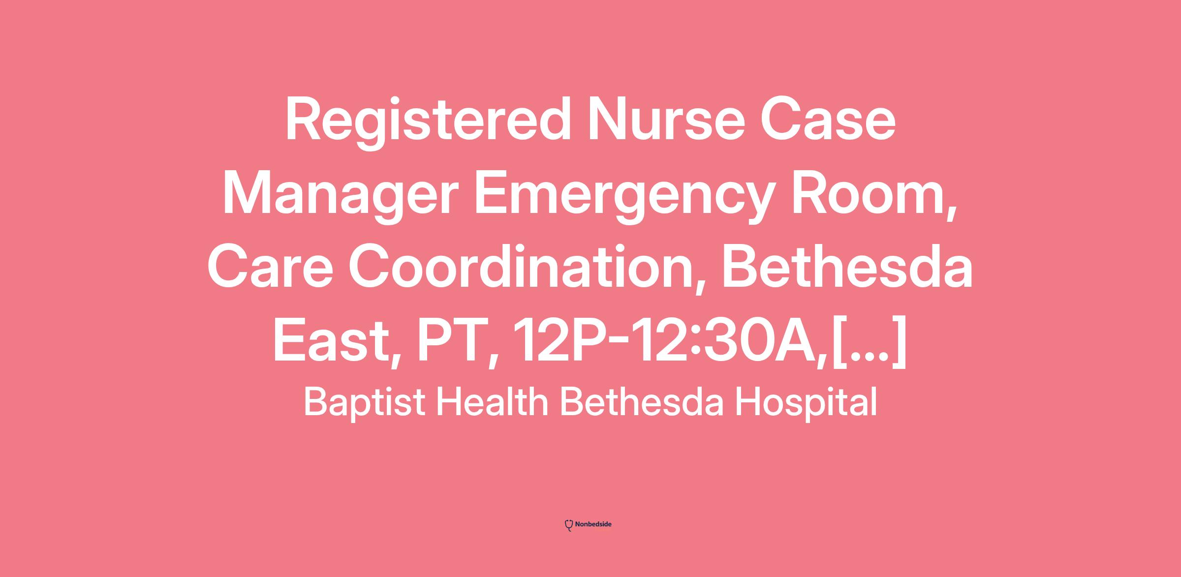 Join to apply for the Registered Nurse Case Manager Emergency Room, Care Coordination, Bethesda East, PT, 12P-12:30A, Sat - Sun role at Baptist Health Bethesda Hospital