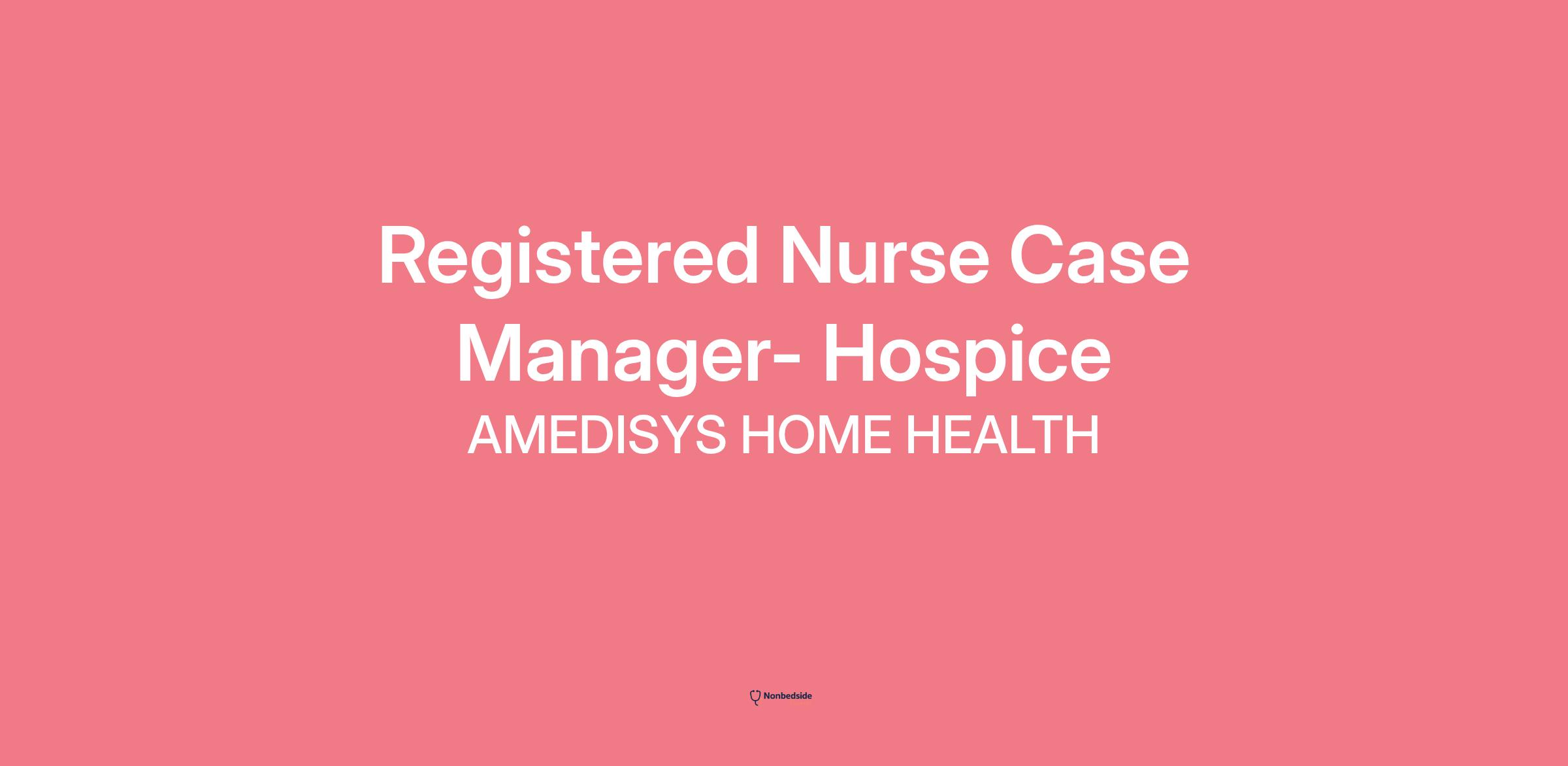 Join to apply for the Registered Nurse Case Manager - Hospice role at AMEDISYS HOME HEALTH