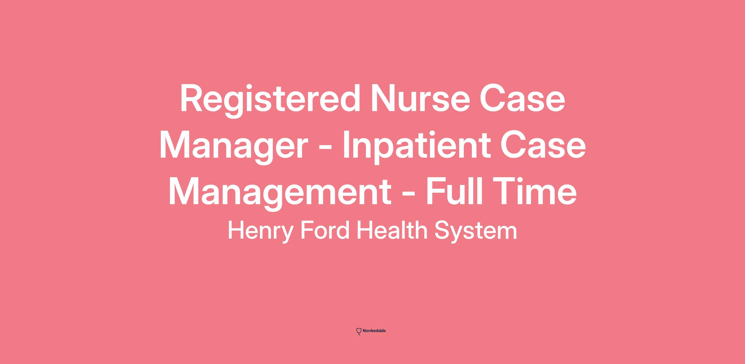Registered Nurse Case Manager - Inpatient Case Management - Full Time Henry Ford Hospital - Detroit Main Campus