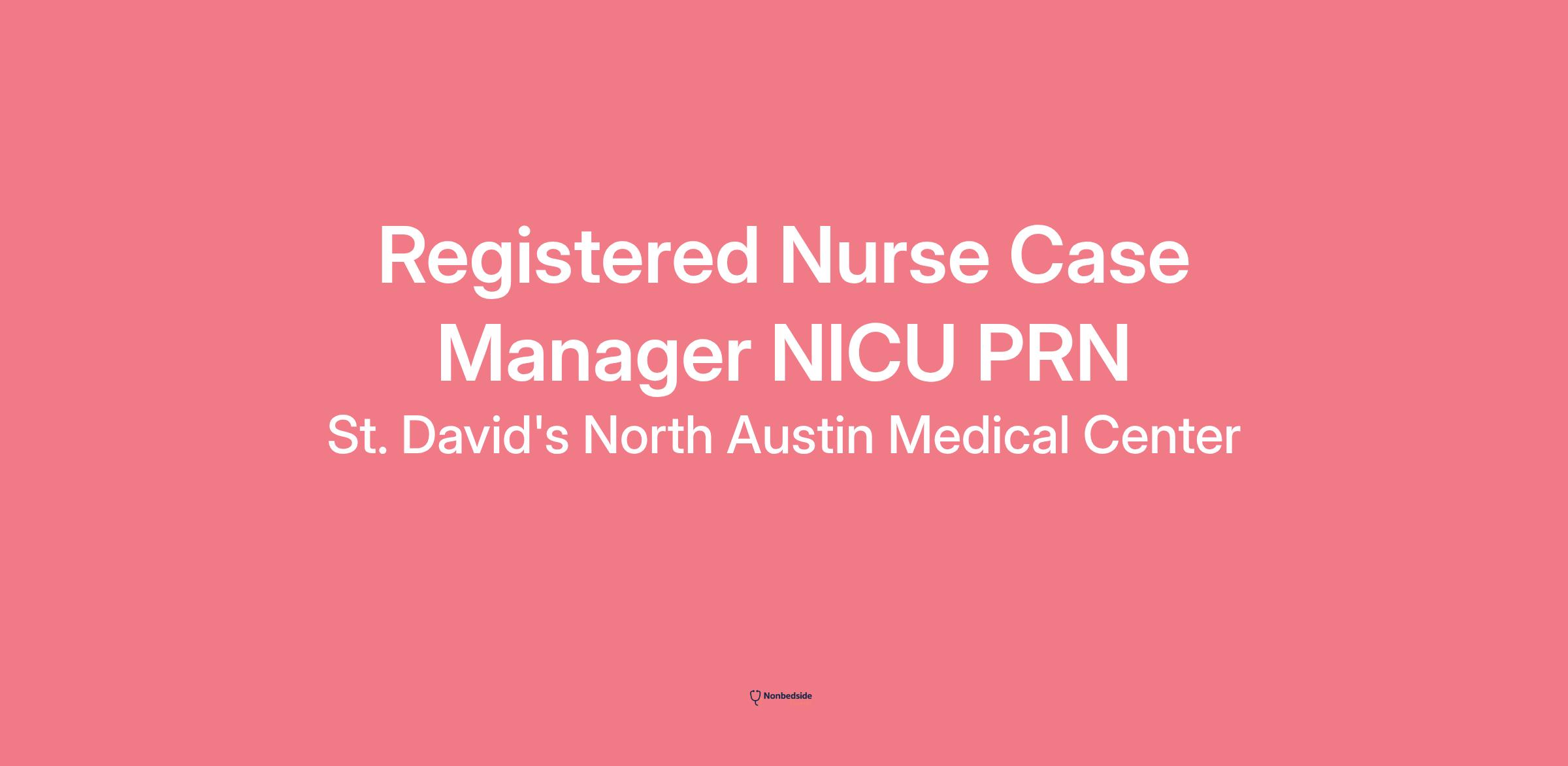 Do you currently have an opportunity to make a real impact with your work? With over 2,000 sites of care and serving over 31.2 million patient interactions every year, nurses at St. David's North Austin Medical Center have the opportunity to make a real impact. As a(an) Registered Nurse Case Manager NICU PRN you can be a part of change.