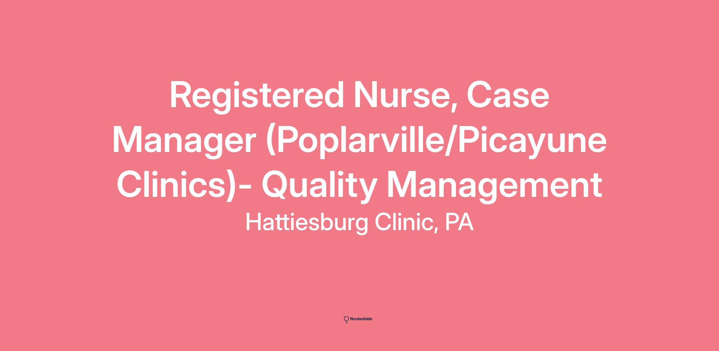 Registered Nurse, Case Manager (Poplarville/Picayune Clinics)- Quality Management