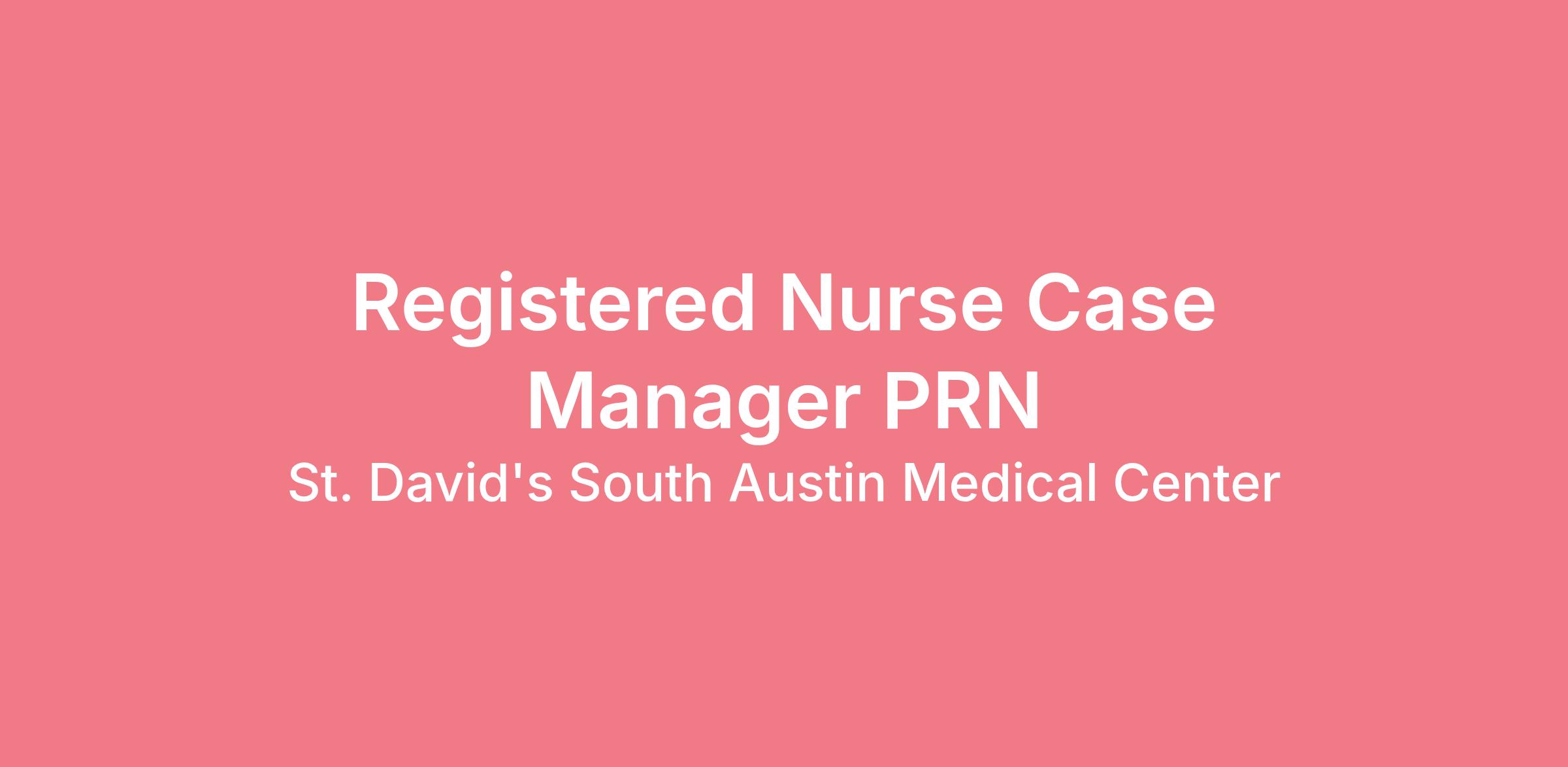Do you currently have an opportunity to make a real impact with your work? With over 2,000 sites of care and serving over 31.2 million patient interactions every year, nurses at St. David's South Austin Medical Center have the opportunity to make a real impact. As a(an) Registered Nurse Case Manager PRN you can be a part of change.