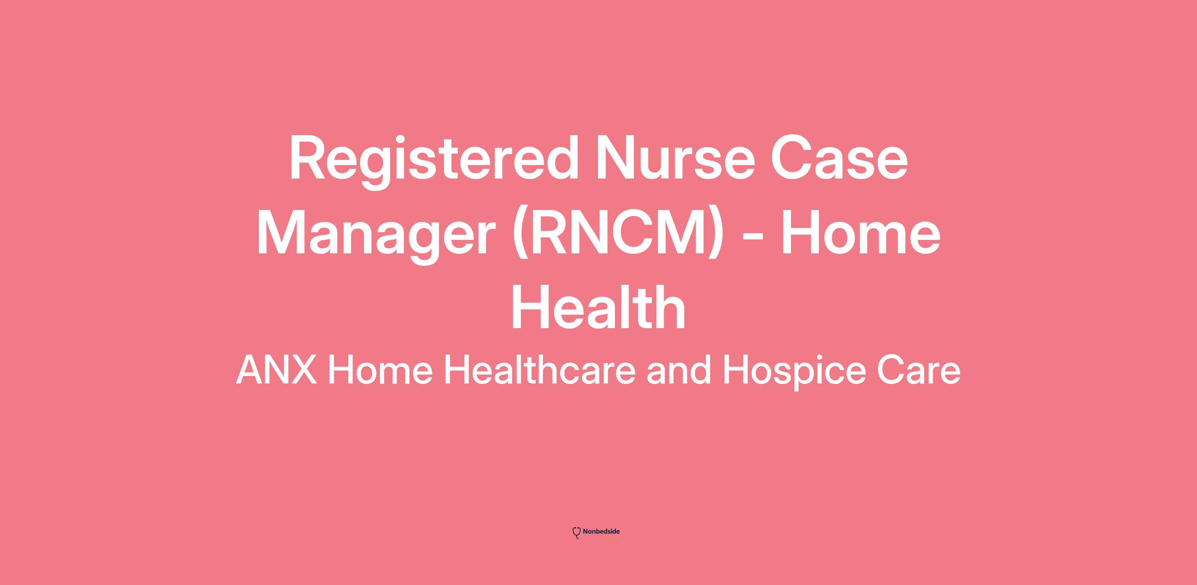 Registered Nurse Case Manager (RNCM) - Home Health Join to apply for the Registered Nurse Case Manager (RNCM) - Home Health role at ANX Home Healthcare and Hospice Care