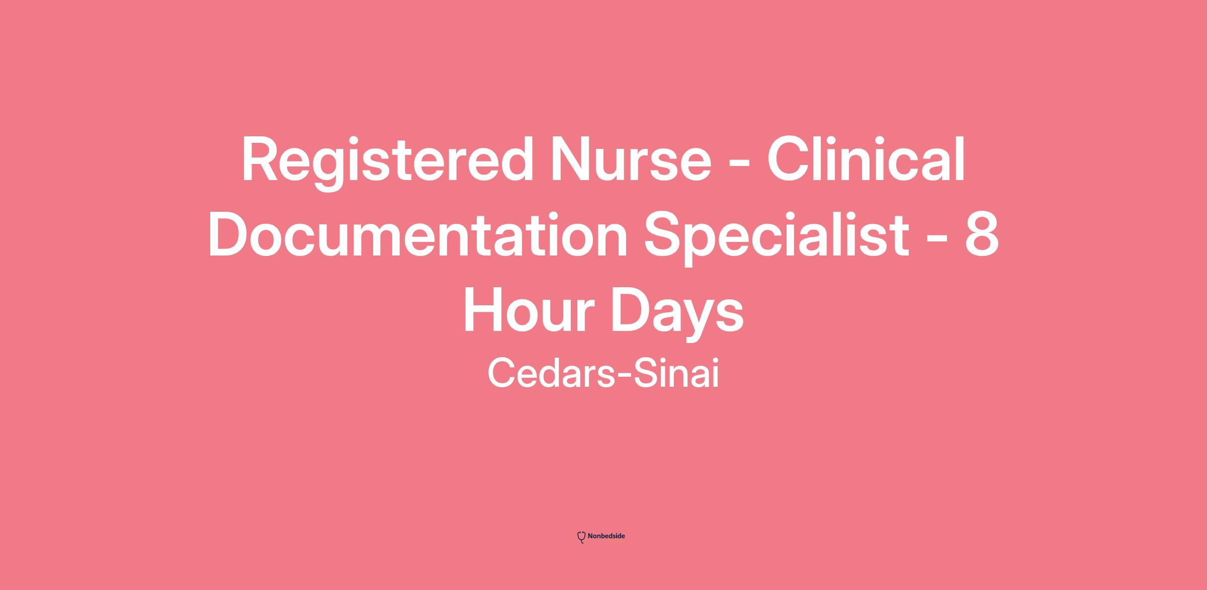 **Working Title** : Registered Nurse - Clinical Documentation Specialist - 8 Hour Days