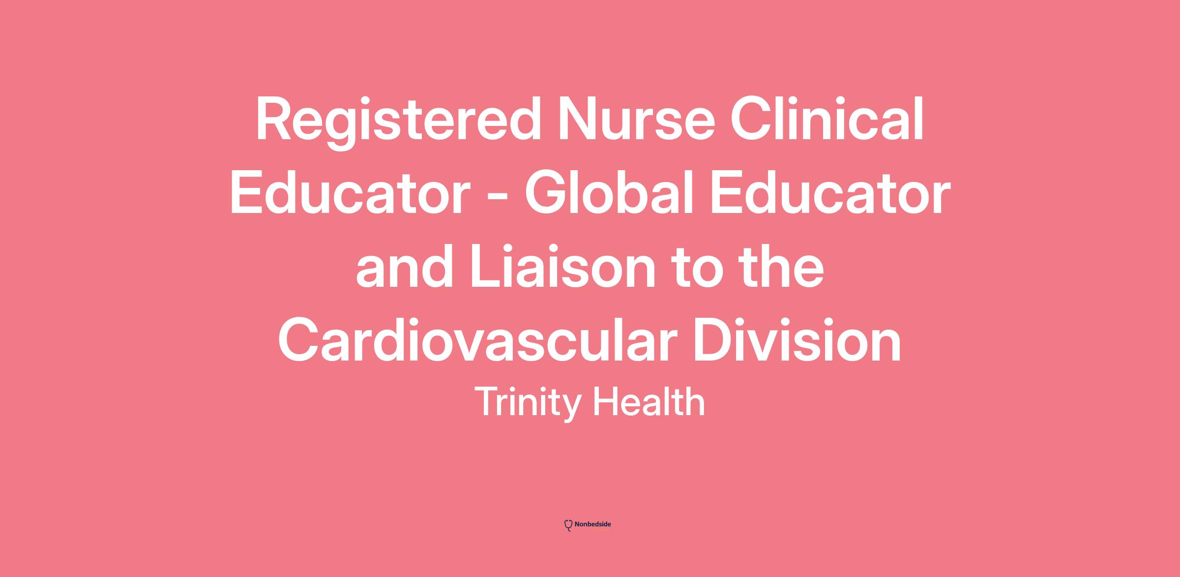 Registered Nurse Clinical Educator - Global Educator and Liaison to the Cardiovascular Division Join to apply for the Registered Nurse Clinical Educator - Global Educator and Liaison to the Cardiovascular Division role at Trinity Health .
