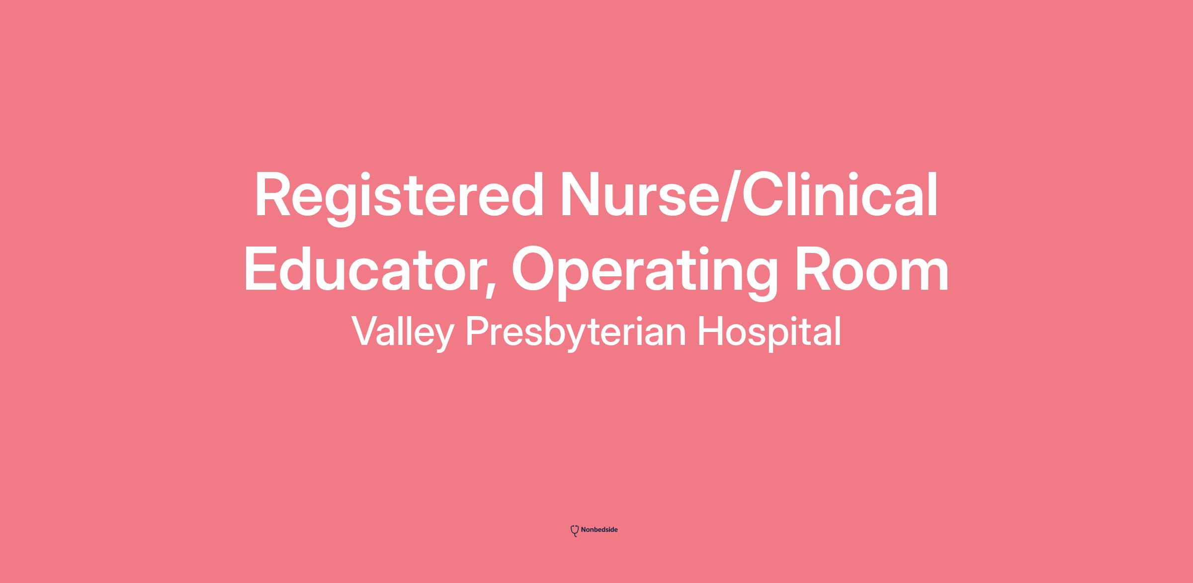 Valley Presbyterian Hospital is a beacon of health in the San Fernando Valley, committed to providing outstanding care and improving community health. We are looking for an experienced and dynamic Registered Nurse (RN) to step into the role of Registered Nurse/Clinical Educator, Operating Room and lead our dedicated team.