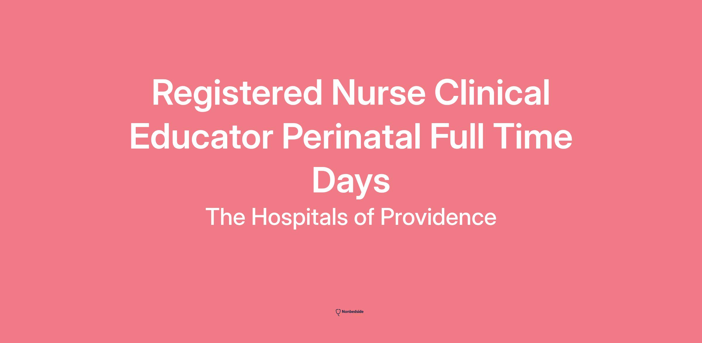 Overview Registered Nurse Clinical Educator Perinatal Full Time Days — Join to apply for the Registered Nurse Clinical Educator Perinatal Full Time Days role at The Hospitals of Providence .