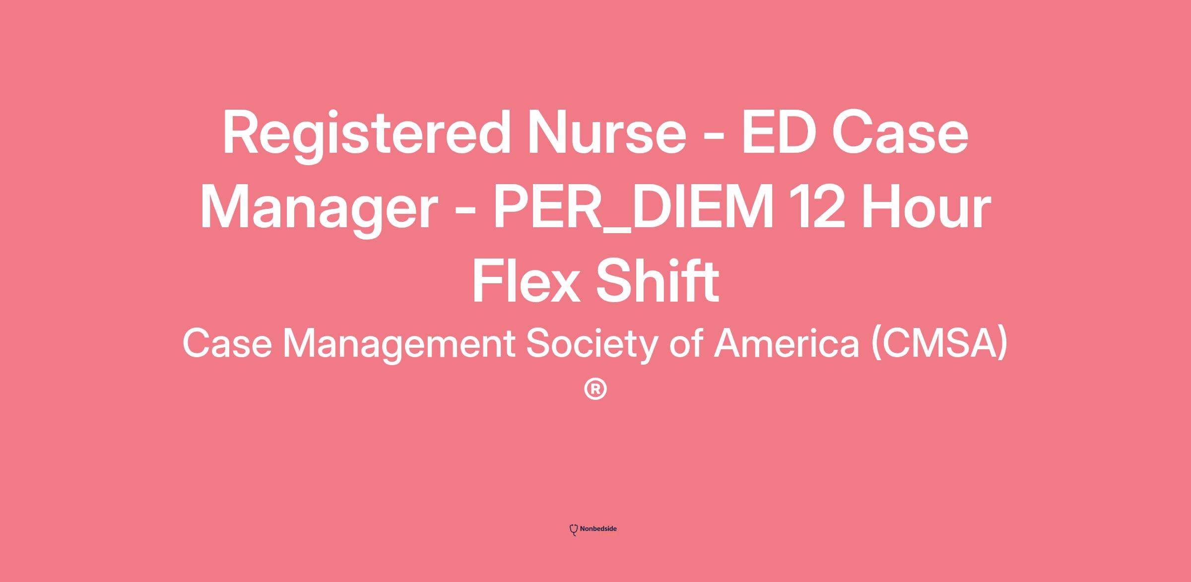 Working Title : Registered Nurse - ED Case Manager - PER_DIEM 12 Hour Flex Shift