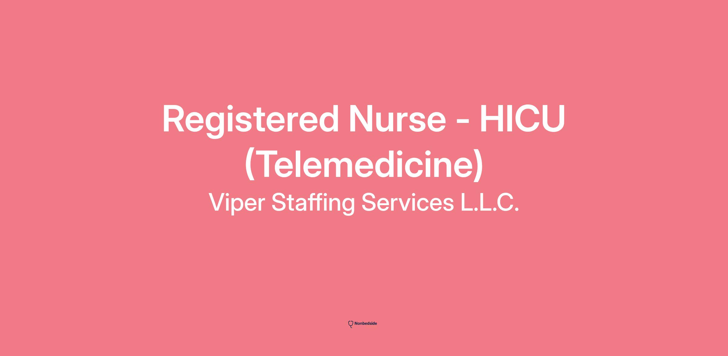 (Hiring) Registered Nurse - HICU (Telemedicine) We are seeking a Registered Nurse to join our team! You will be responsible for the assessment, diagnosis, and treatment of assigned patients.