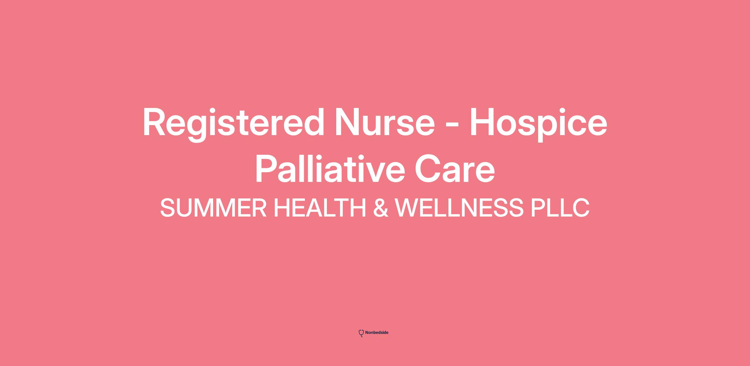 Join to apply for the Registered Nurse - Hospice Palliative Care role at SUMMER HEALTH & WELLNESS PLLC .