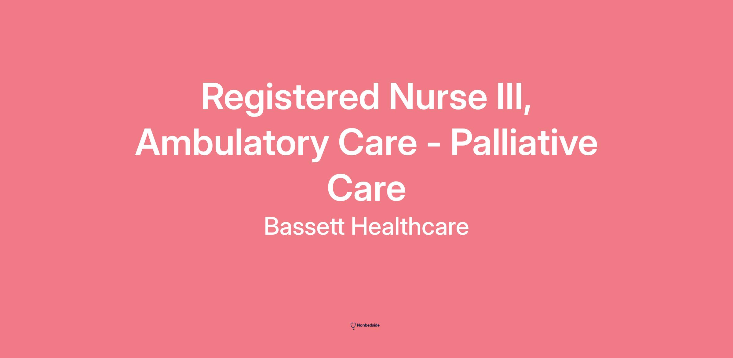 The Registered Professional Nurse III, Ambulatory Care is accountable for the delivery of safe patient care utilizing the nursing process. The RN assesses, plans, delivers, coordinates, integrates, and evaluates nursing care related to patient needs. The RN contributes to the support of patients through interdisciplinary teamwork.
