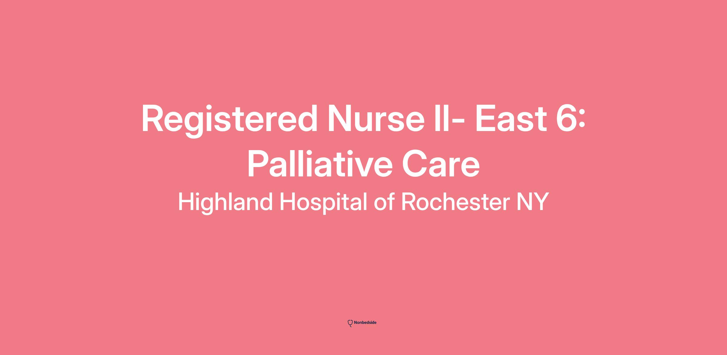 Join to apply for the Registered Nurse II - East 6: Palliative Care role at Highland Hospital of Rochester NY