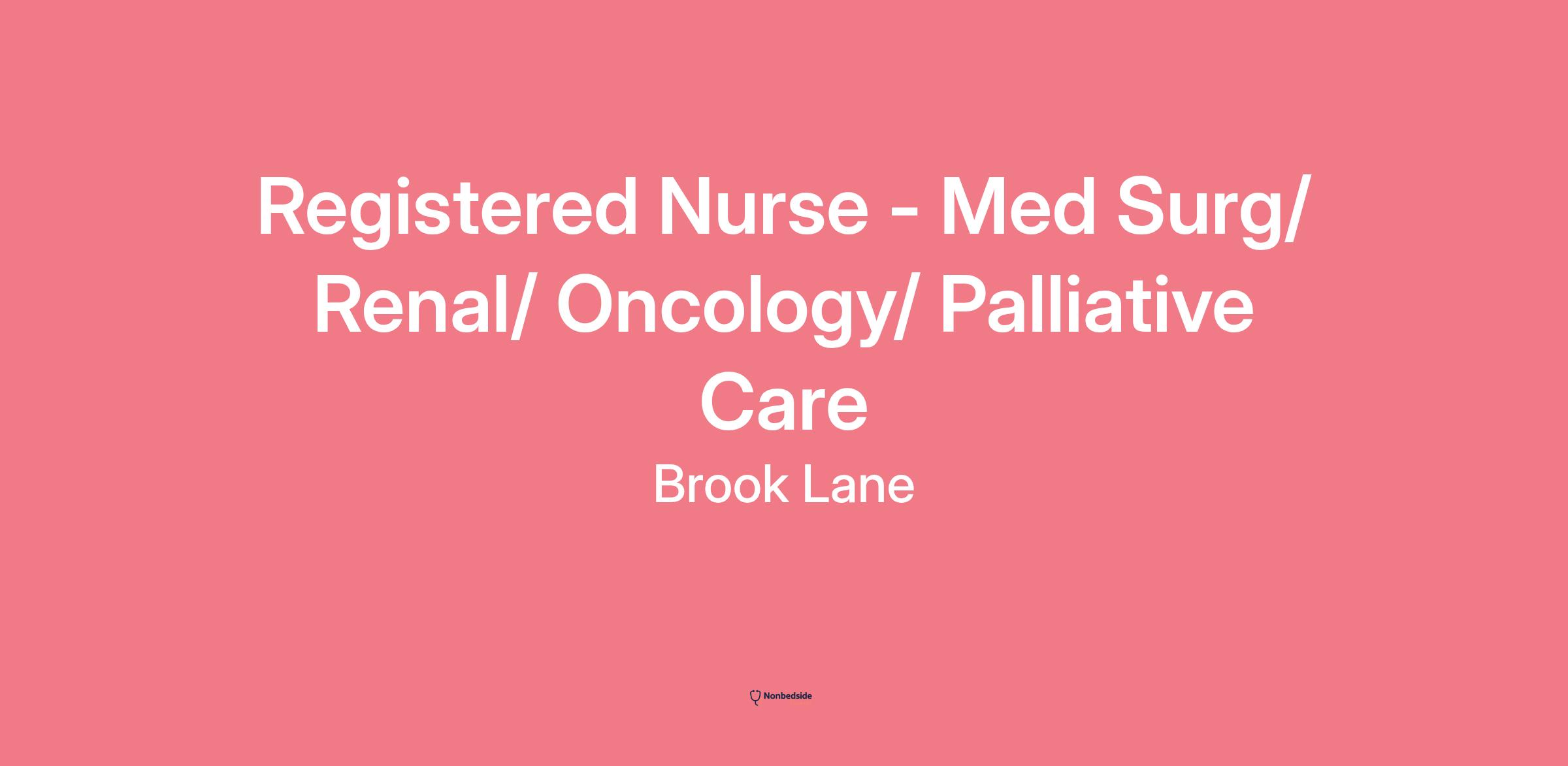 Registered Nurse -Med Surg/ Renal/ Oncology/ Palliative Care