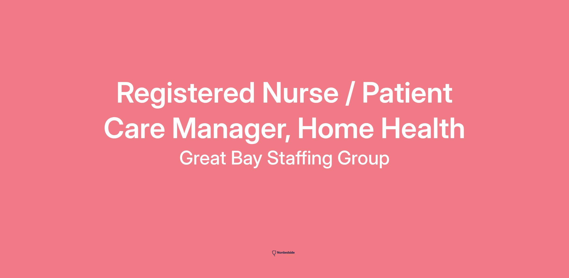 About the job Registered Nurse / Patient Care Manager, Home Health