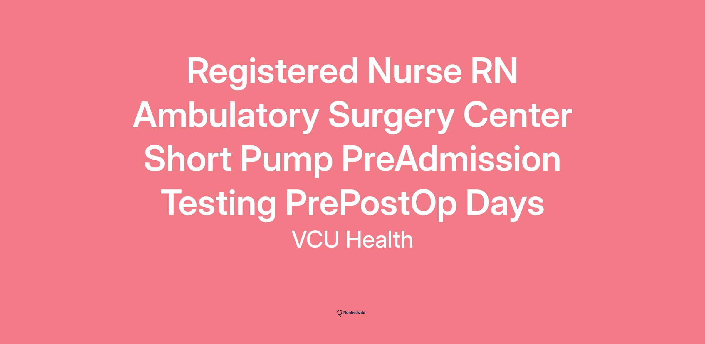 Position is 3 days/week Pre-Admission Testing and 2 days/week Pre/Post-Op