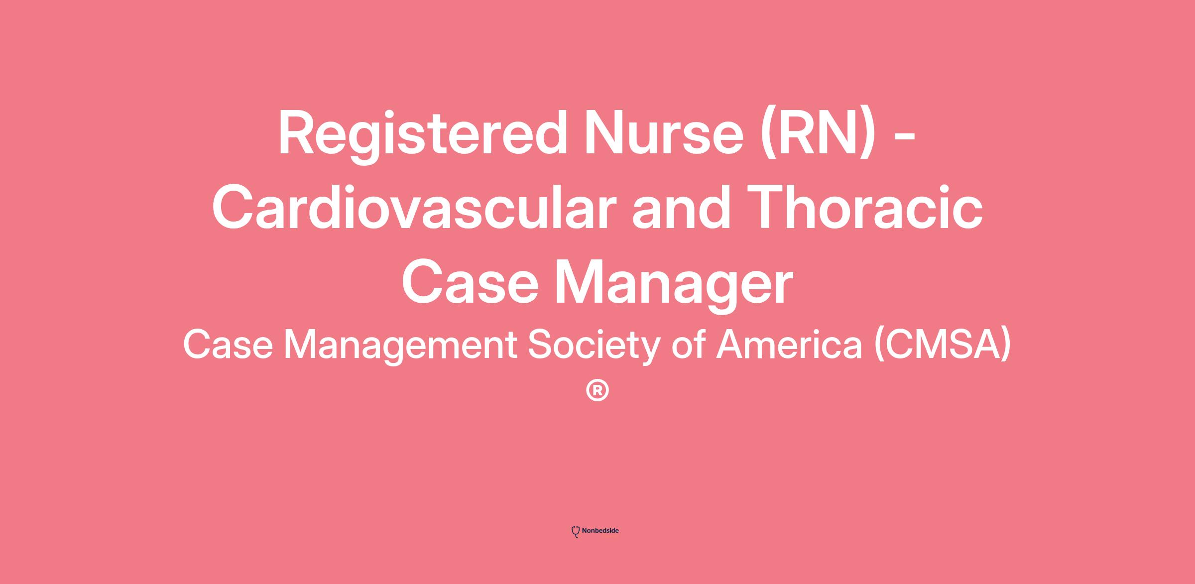 Preferred Experience: Experience in Surgery Case Management - Cardiovascular - Thoracic - Surgical Services - Operating Room