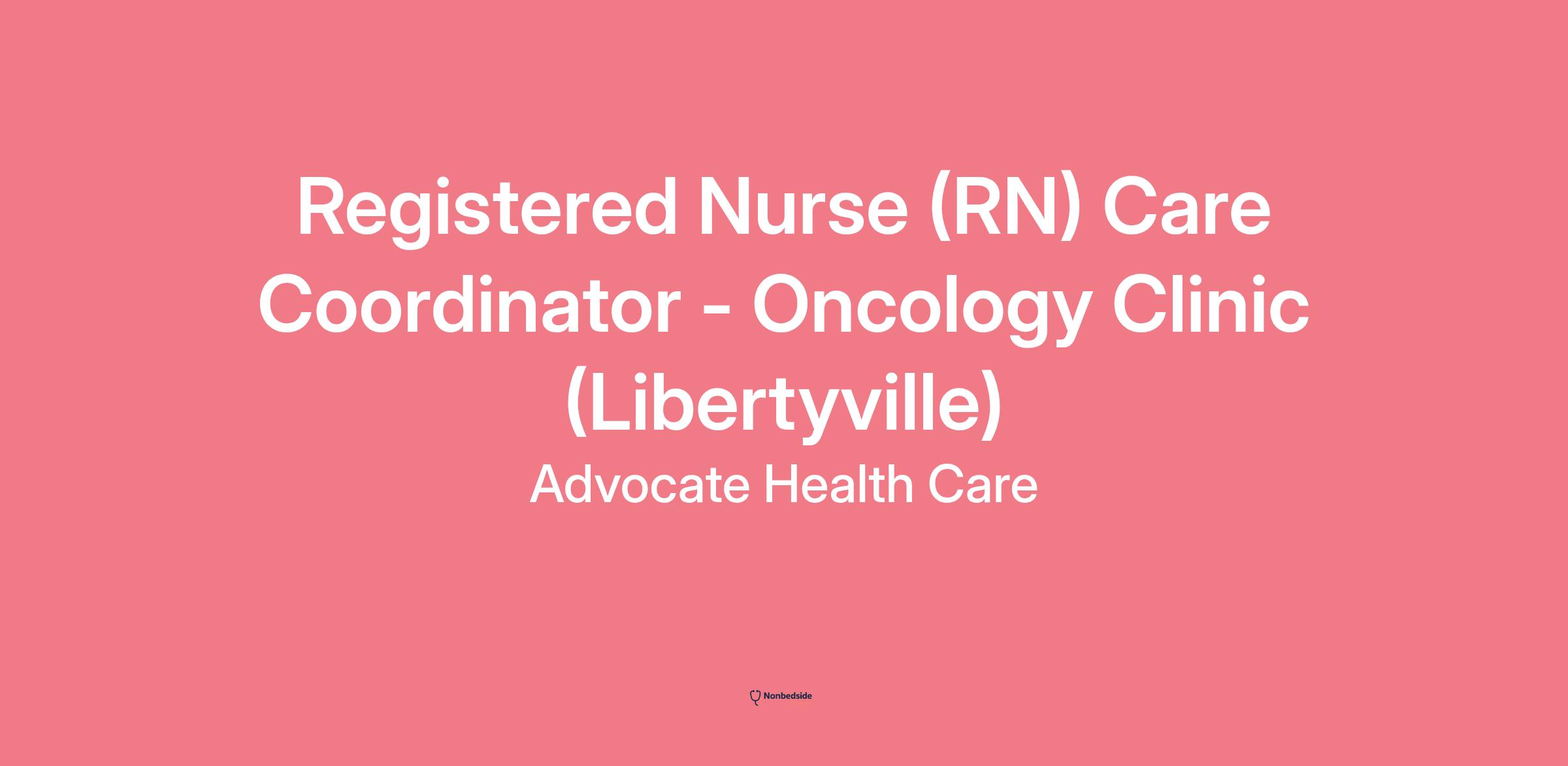 Overview Registered Nurse (RN) Care Coordinator - Oncology Clinic (Libertyville) – Advocate Health Care. This range is provided by Advocate Health Care. Your actual pay will be based on your skills and experience — talk with your recruiter to learn more.