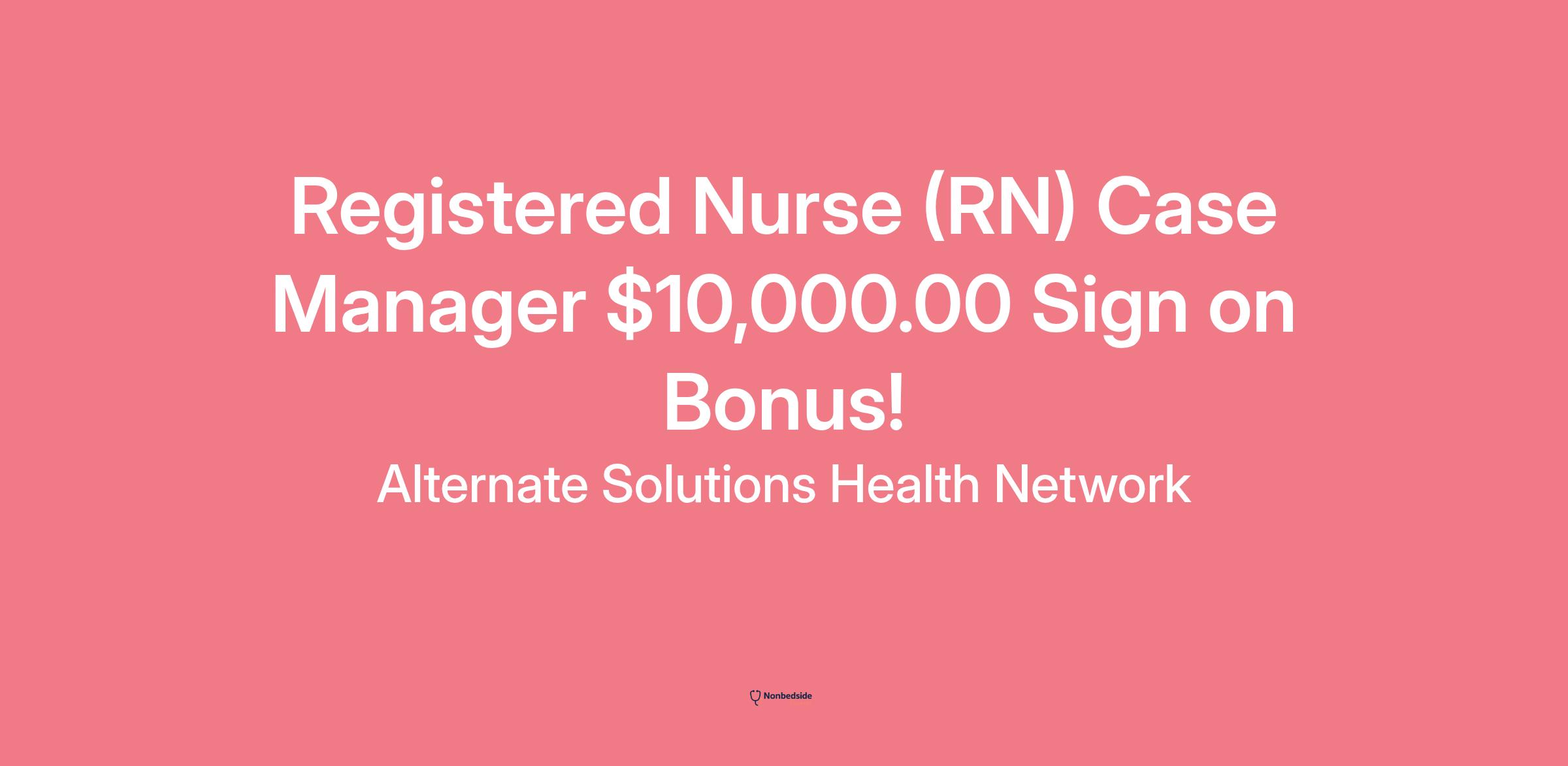 Apply for the Registered Nurse (RN) Case Manager position at Alternate Solutions Health Network. Our culture and people set us apart from other post‑acute care providers. We are dedicated to the growth and development of our team to set them up for success. We CARE for our patients like they are our own FAMILY.