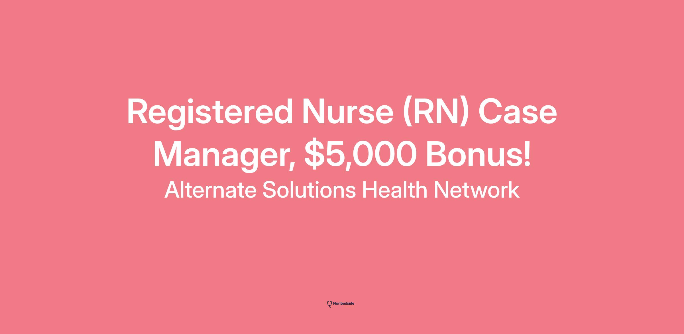 Overview Registered Nurse (RN) Case Manager, $5,000 Bonus! Join to apply for the Registered Nurse (RN) Case Manager, $5,000 Bonus! role at Alternate Solutions Health Network .