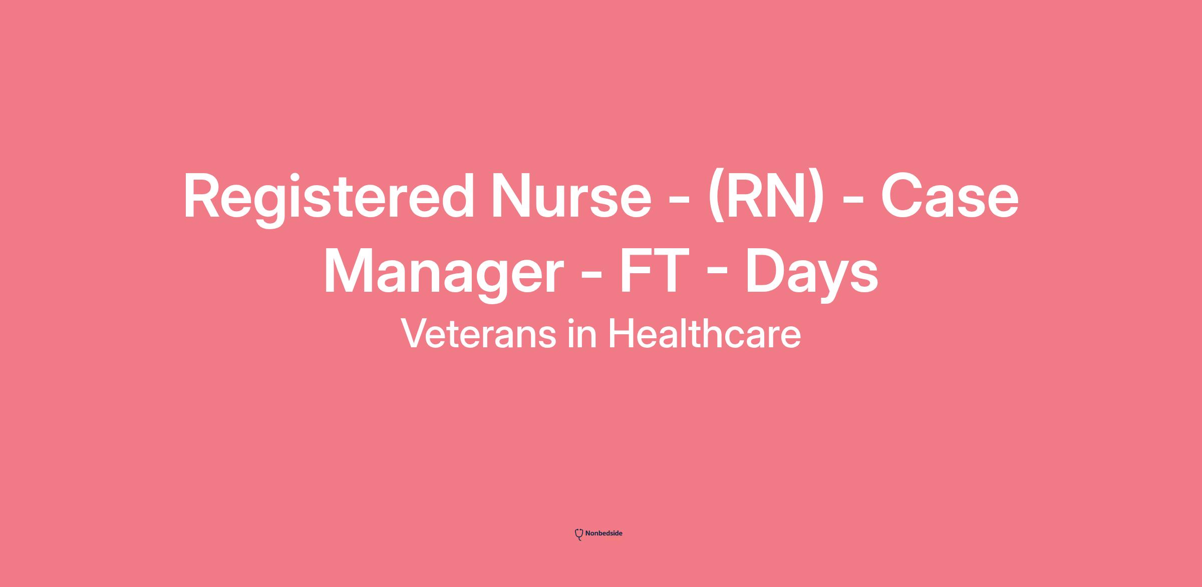 Registered Nurse - (RN) - Case Manager - FT - Days Join to apply for the Registered Nurse - (RN) - Case Manager - FT - Days role at Veterans in Healthcare