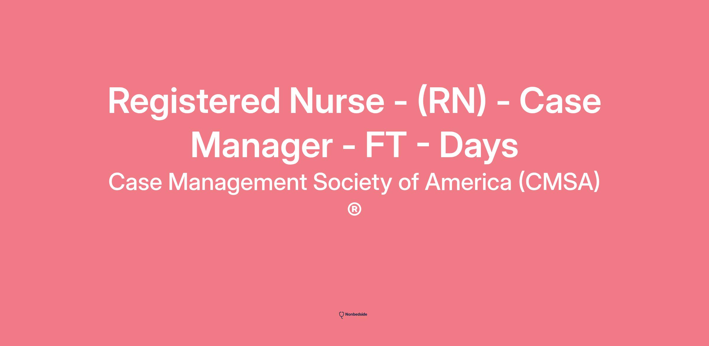 Registered Nurse - (RN) - Case Manager - FT - Days