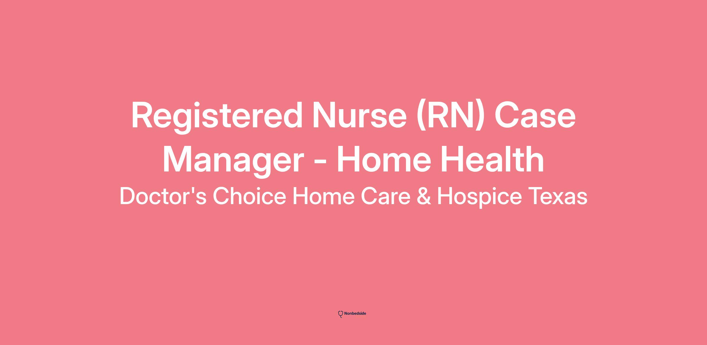 Registered Nurse (RN) Case Manager - Home Health Join to apply for the Registered Nurse (RN) Case Manager - Home Health role at Doctor's Choice Home Care & Hospice Texas