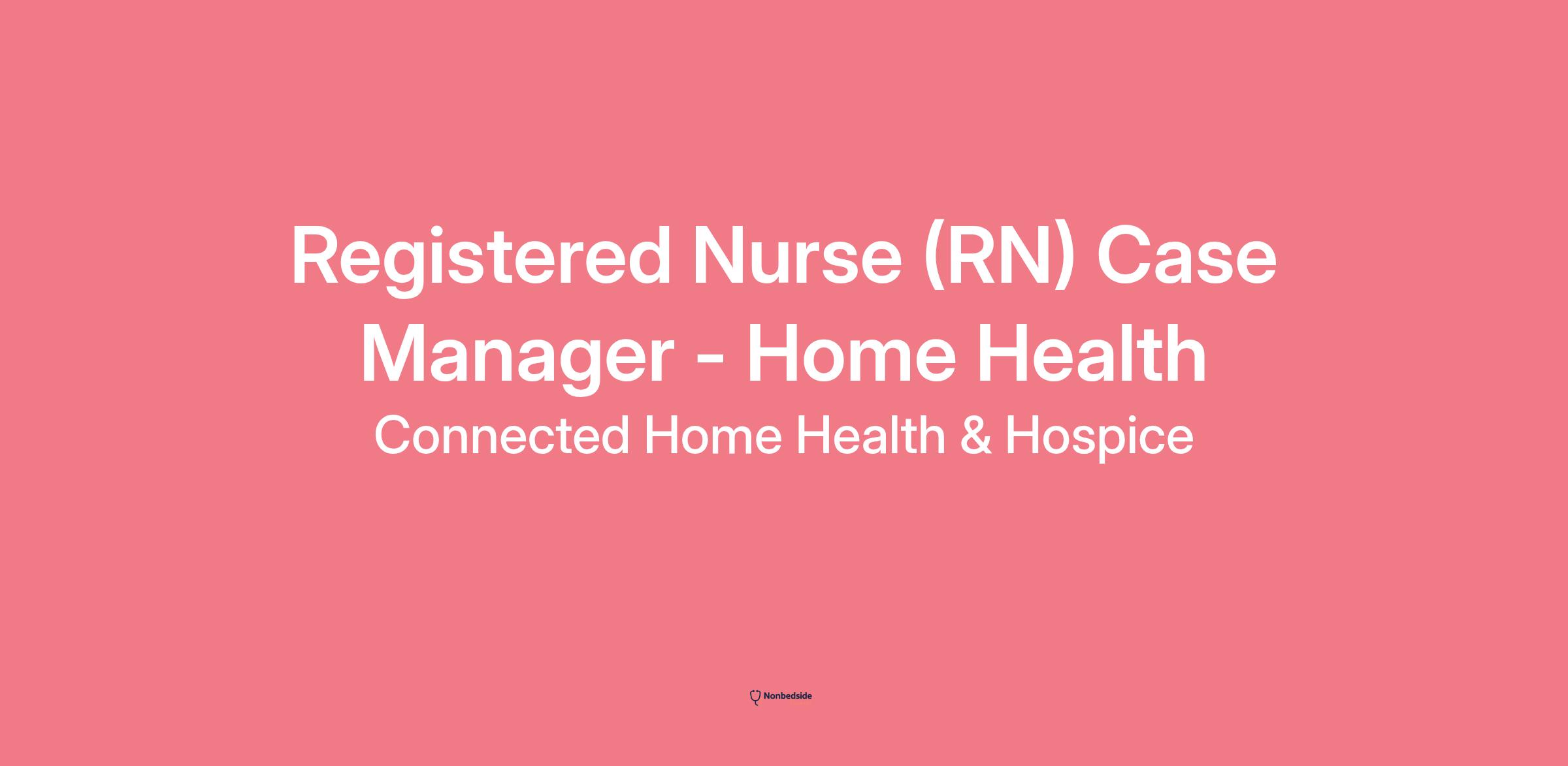 Connected Home Health and Hospice is an Equal Opportunity Employer. We evaluate qualified applicants without regard to race, color, religion, sex, national origin, disability, veteran status, and other protected characteristics. Pre-employment criminal background check and drug screening required.