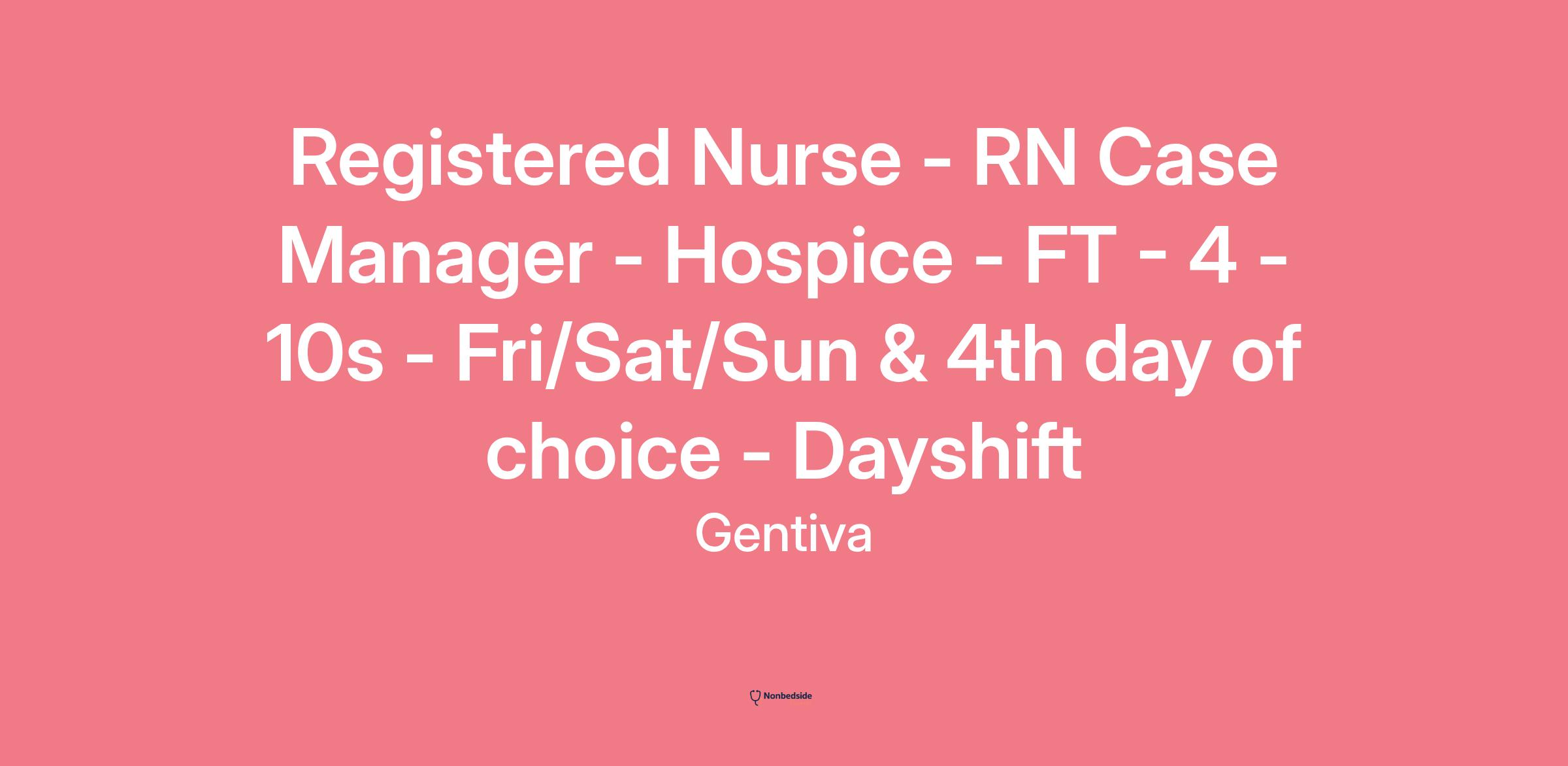 Registered Nurse - RN Case Manager - Hospice - FT - 4 - 10s - Fri/Sat/Sun & 4th day of choice - Dayshift